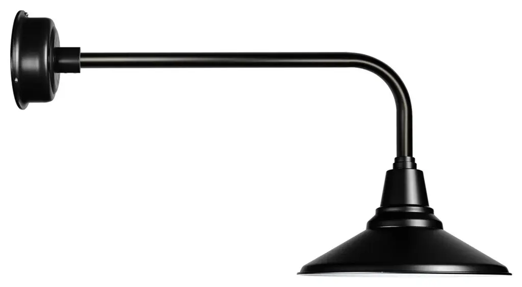 Cocoweb''s Calla Barn Light features a smooth, sloping shade that''s perfect for both storefronts and at home! Classically modern, the wide-angled shade of this lamp fills your spaces with a vibrant illumination perfect for both interior lighting in your kitchen and landscape lighting for the great outdoors!Weatherproof For OutdoorsThe Calla features a high quality steel frame that''s coated with a water-resistant finish for outdoor use. Our Calla barn lights are MET listed for outdoor weather conditions. This powder coating allows the lamp to resist fading and chipping as well, preserving the look of your lamp over time. Rain or shine, Cocoweb Barn Lights are built to last.LED TechnologyIntegrated with the latest in LED lighting technology, our gooseneck barn lights shine with a warm yellow illumination. Cocoweb LEDs work at peak energy efficiency to produce a light that''s brighter than a 100W screw-in bulb and uses only a quarter of the electricity. Best of all, our Barn Lighting LEDs last for over 50,000 hours and are fully dimmable!