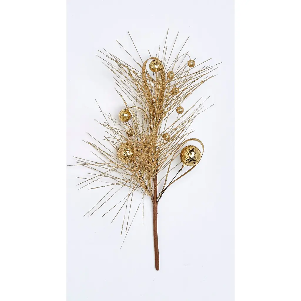 Add this gorgeous glitter pick to any holiday décor for a bright look. The pick is decorated with Balls and needles, all covered with glitter. Perfect accent to any arrangement.