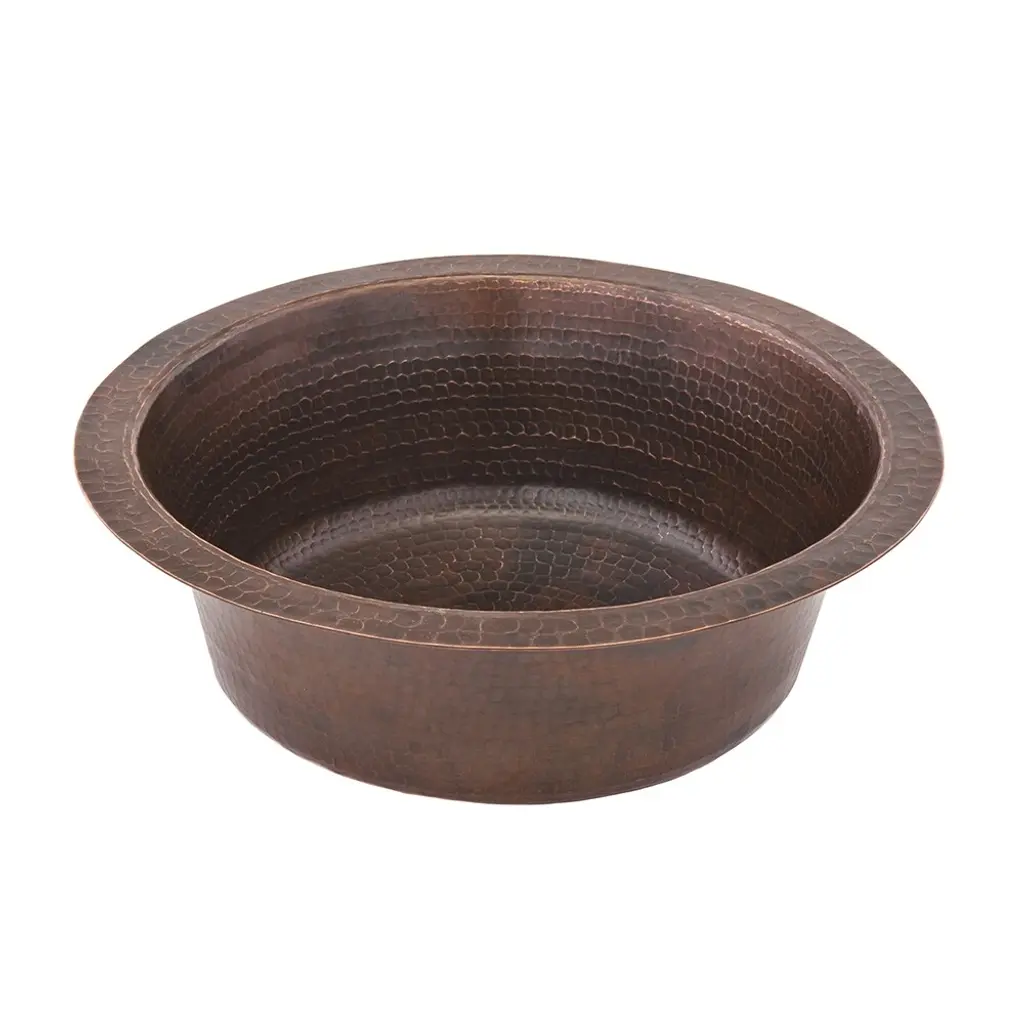 Create a focal point for your bar or prep area as refreshing as the cocktails you will be preparing with a bar or prep sink from Premier Copper Products. Designed to suit your specific needs and style, handcrafted from pure copper by our skilled artisans, and built to last a lifetime, a bar or prep sink is the ultimate way to entertain and cook in style.14" Round Hammered Copper Bar Sink w/ 2" Drain Opening Features:IMPORTANT NOTE: DUE TO THE HANDCRAFTED NATURE OF THIS PRODUCT SMALL VARIANCES IN SIZE AND COLOR MAY OCCUR.INCLUDED:Bar Sink Suggested Accessories: