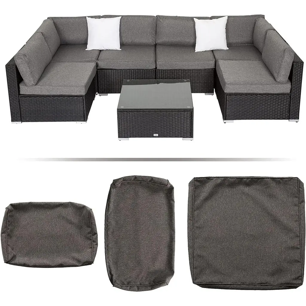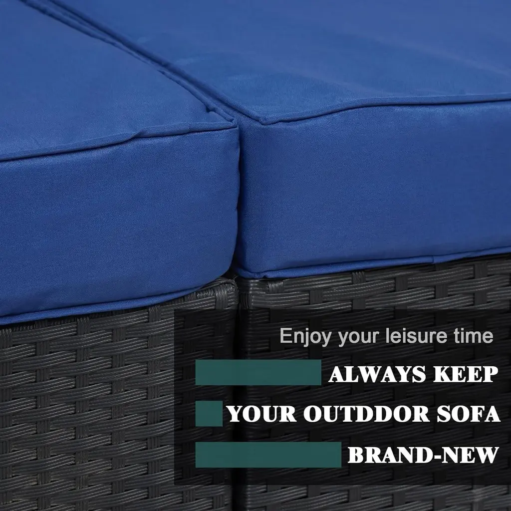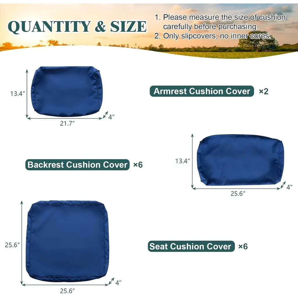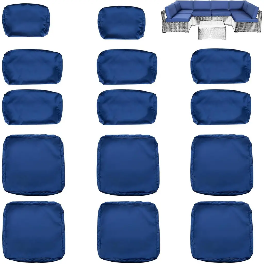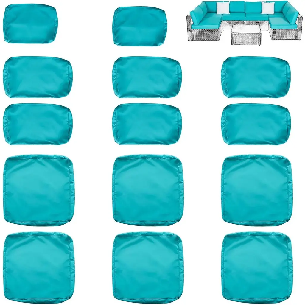 14 Pack Patio Cushion Covers, 100% Polyester Fabric Cushions Slipcover Replacement W/zipper, Fit For Rattan Sectional Sofa Set - Green-Blue