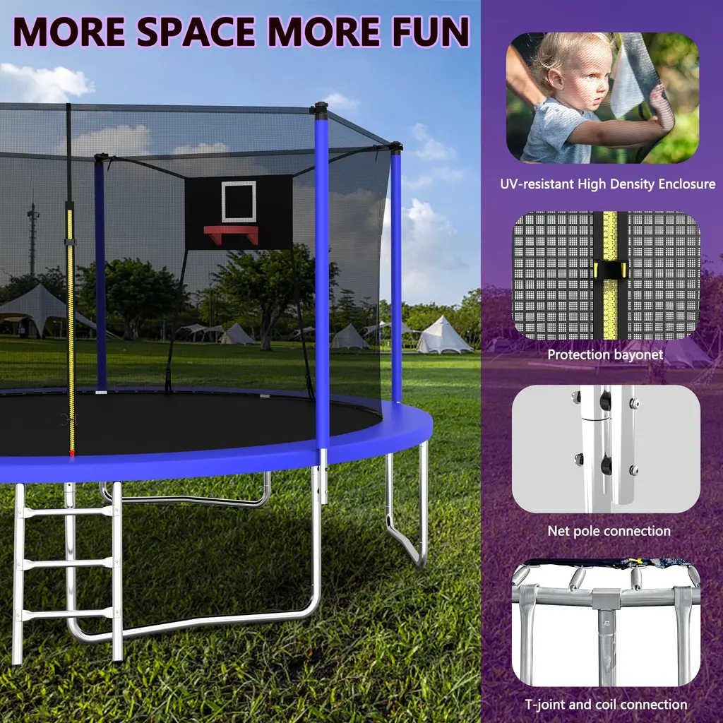 14ft Trampoline Set With Swing,sports Fitness Trampolines With Enclosure Net, Recreational Trampolines - Blue