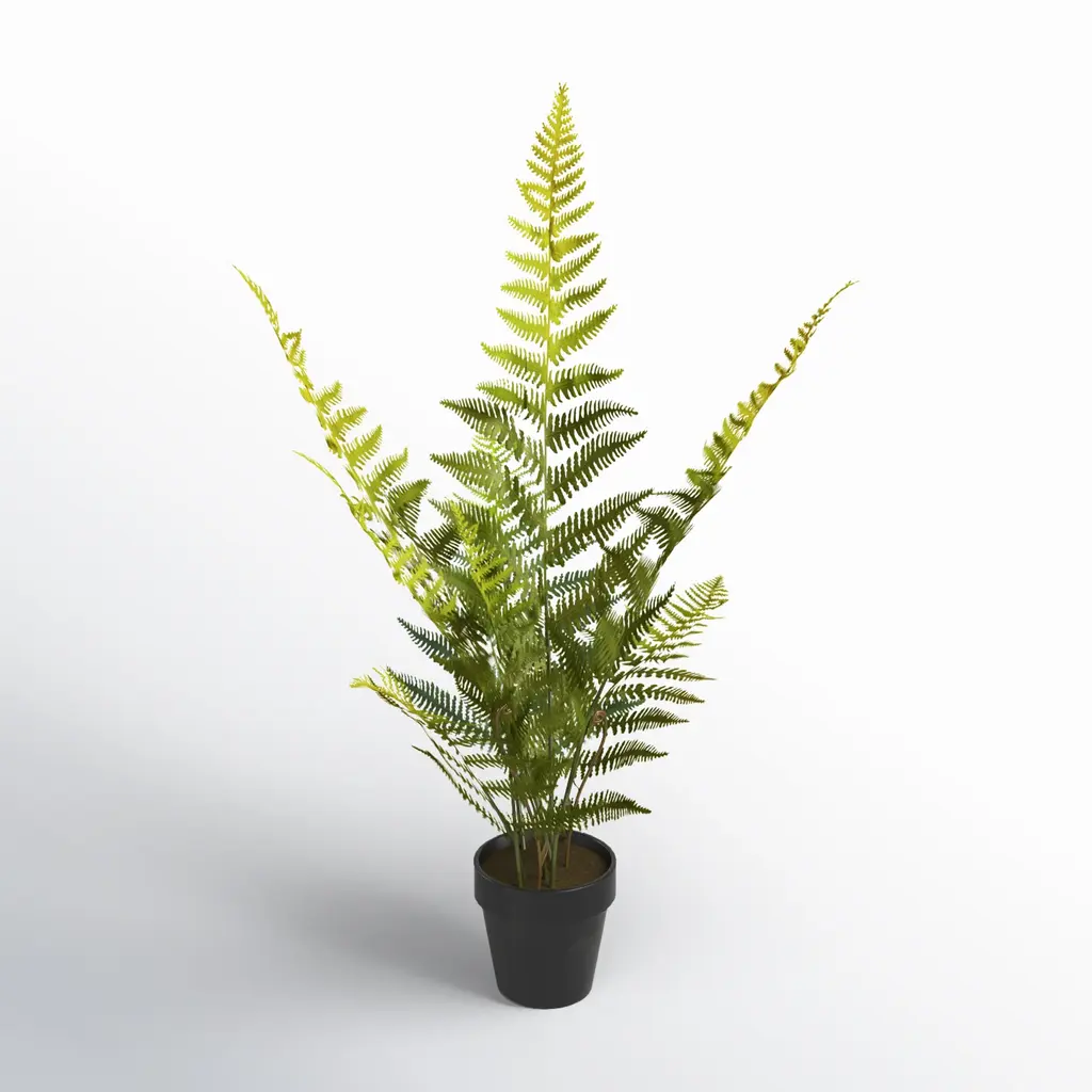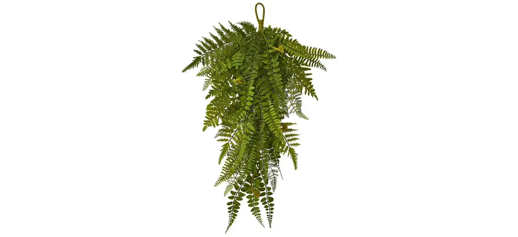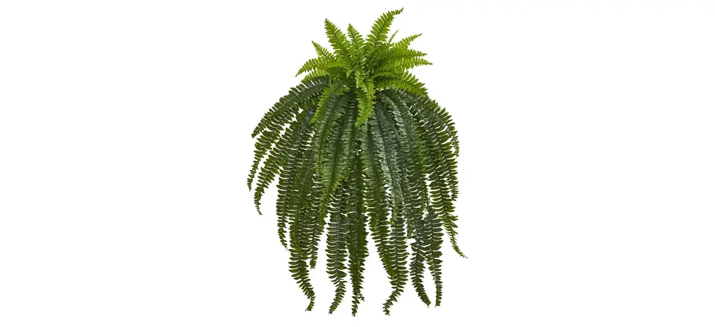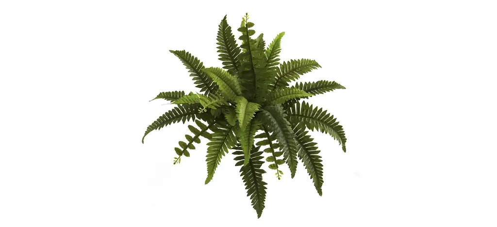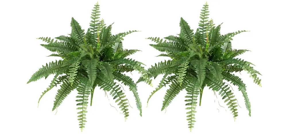 Lifelike and stunning, the 14 inch Boston Fern Artificial Plant's green foliage has two layers to its structure. Larger ferns are placed at the bottom and serve as a backdrop to the shorter ferns that sit on top of them. Suitable for both home and office decor purposes, the natural appearance of this bush will have you admiring it all year round. Arrives with six individual fern plants.