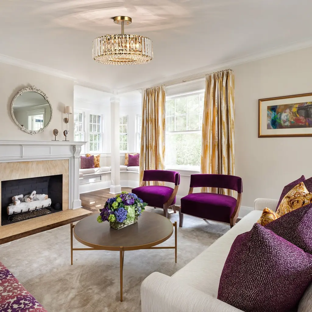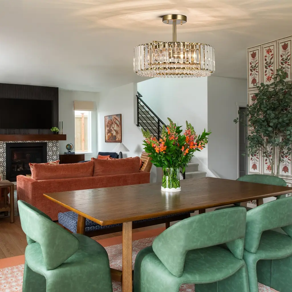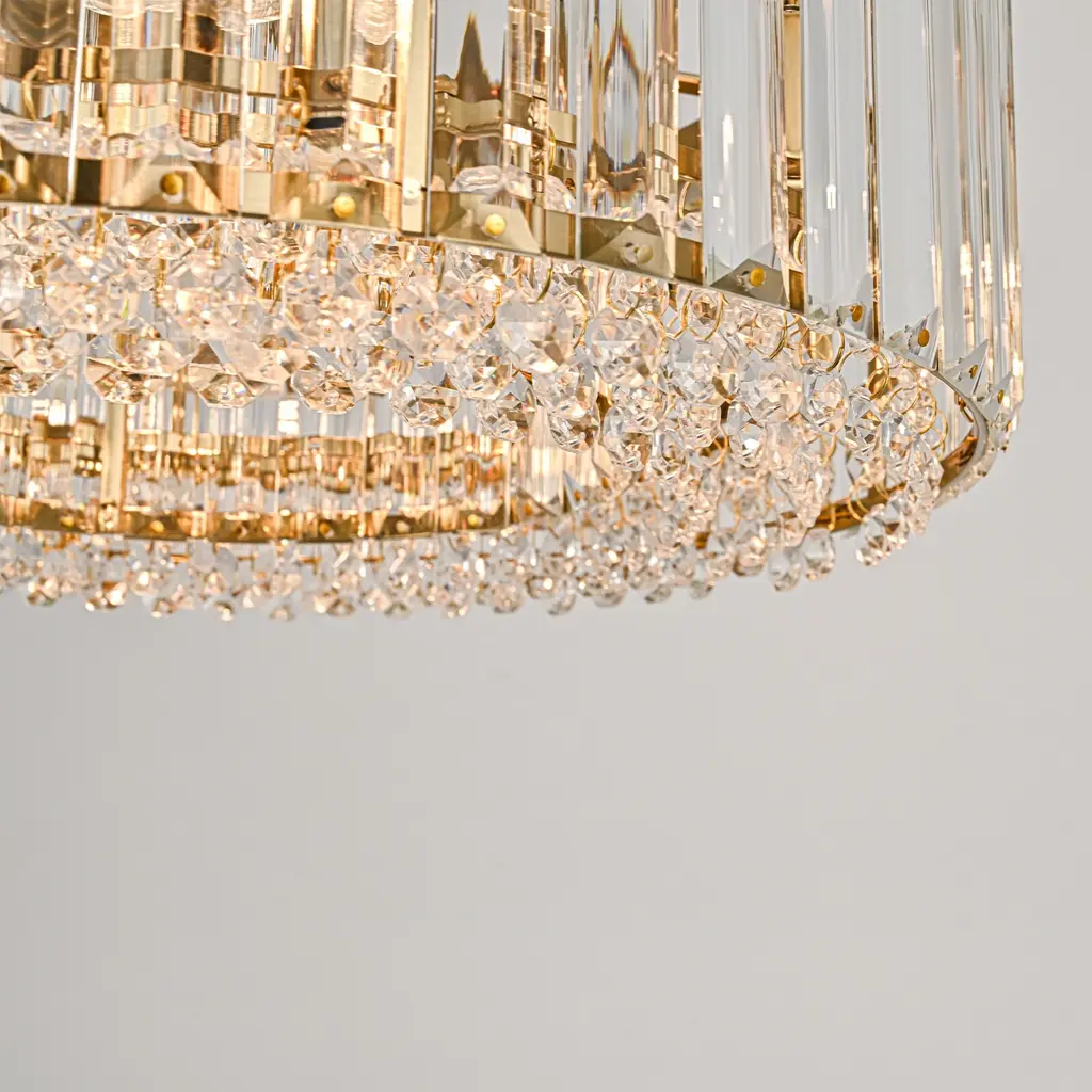 Elevate the luxury of your space to new heights with the enchanting 4-light mid-century modern crystal drum semi-flush mount light, becoming the focal point of your contemporary, modern, or glam-inspired interior. The sleek drum design adds a chic focal point to your space, and the delicate crystal prism rods and drops emanate a resplendent and opulent luminosity that casts a romantic, ethereal light and shadow upon the ceiling. This 4-light modern crystal ceiling light creates a dazzling 360-degree lighting effect that adds a touch of glamor to any room. The low-profile flush mount design fits any ceiling type.Features: Specification: Dimensions: