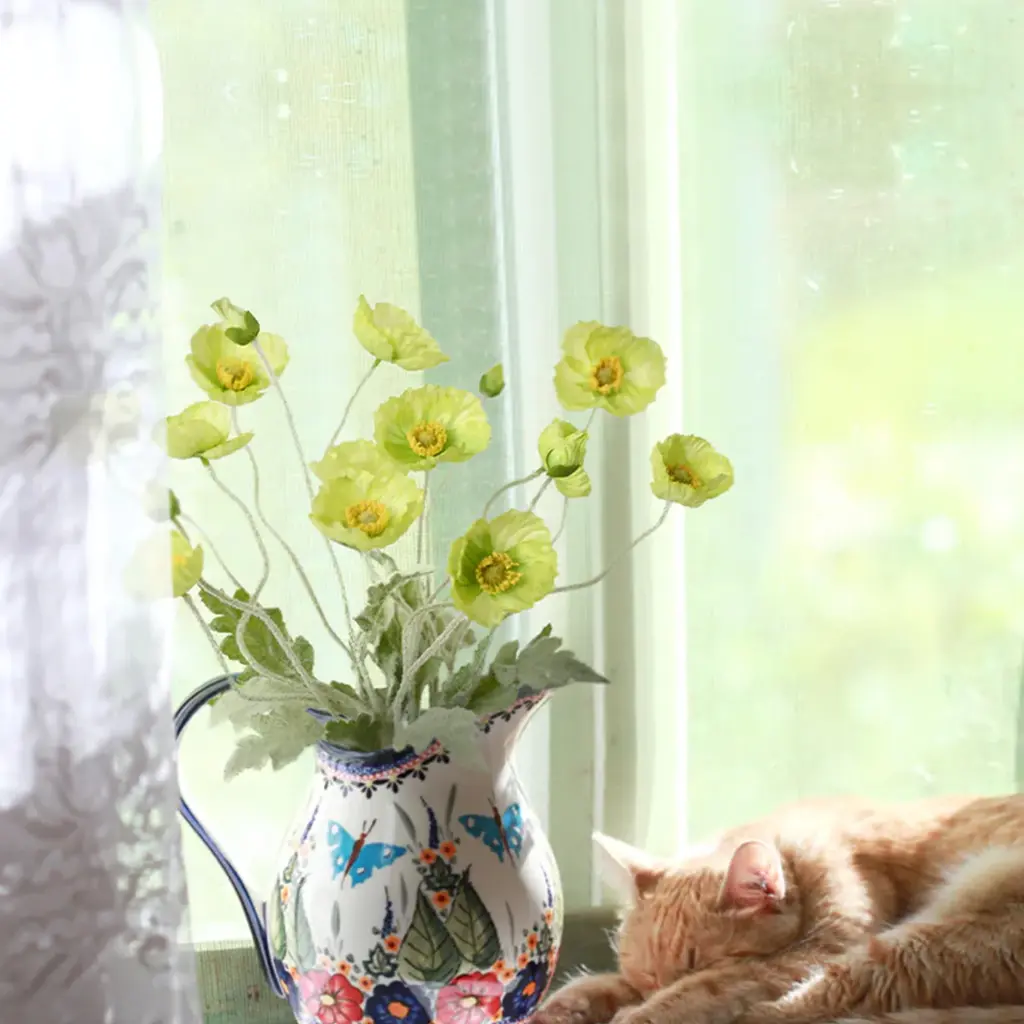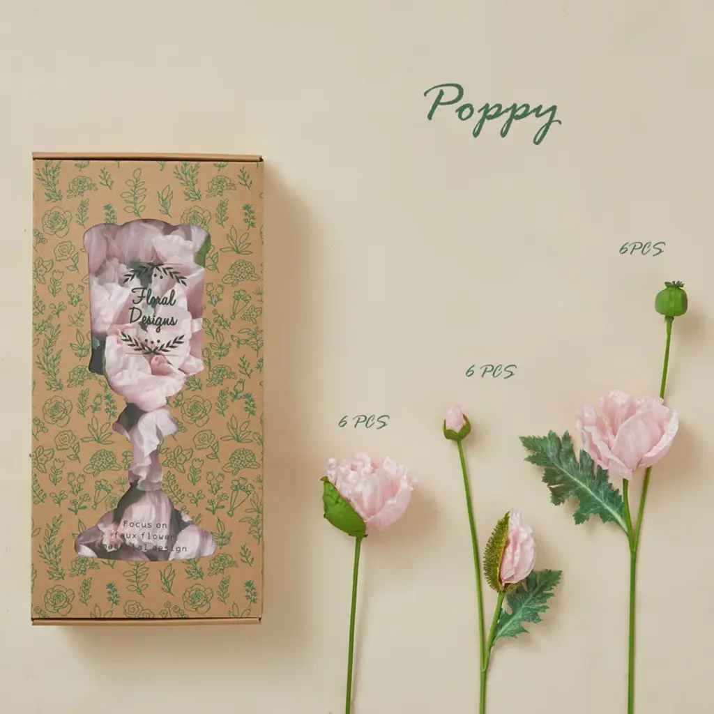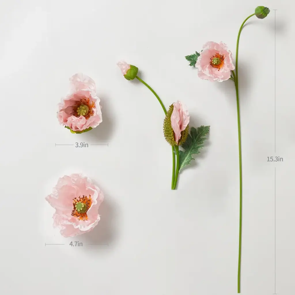 15" Artificial Poppy Flowers - Pink (Set Of 18)