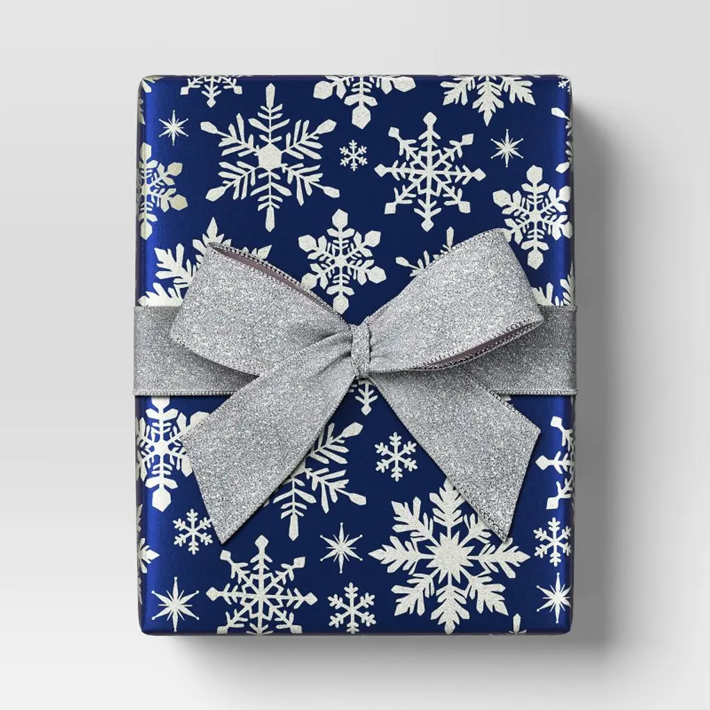 Add a touch of shimmer and shine to your presents with the Christmas Premium Ribbon from Wondershop™. This silver ribbon features a non-wired design with glitter detailing allover to complement a variety of gift wrapping. Made of fabric, this ribbon spool has a length of around 15 feet to give you enough for accenting plenty of gifts.Welcome to the Wondershop™.
