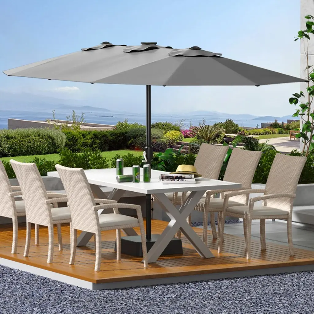 15 Ft Double-sided Rectangle Patio Market Umbrella With Base, Heavy Duty Waterproof And Windproof Umbrella, For Poolside, Lawn & Backyard(grey)