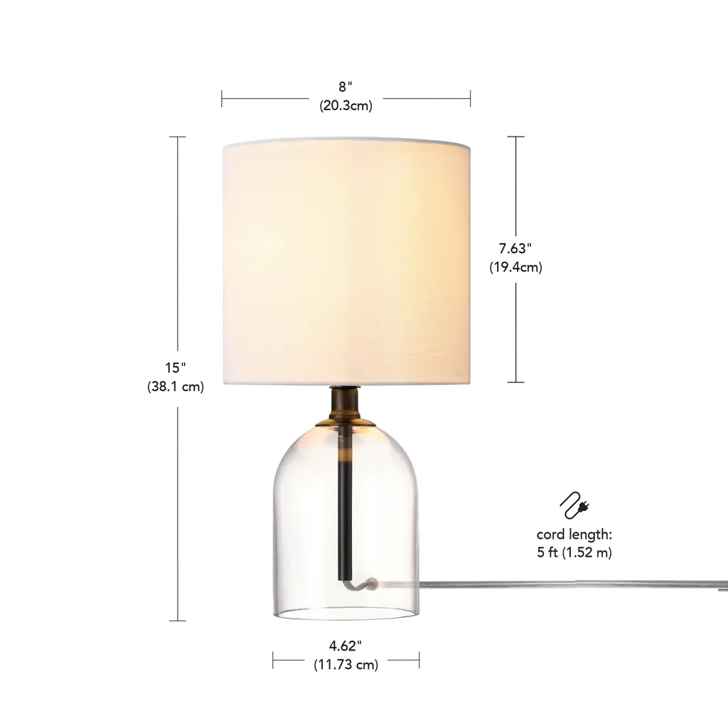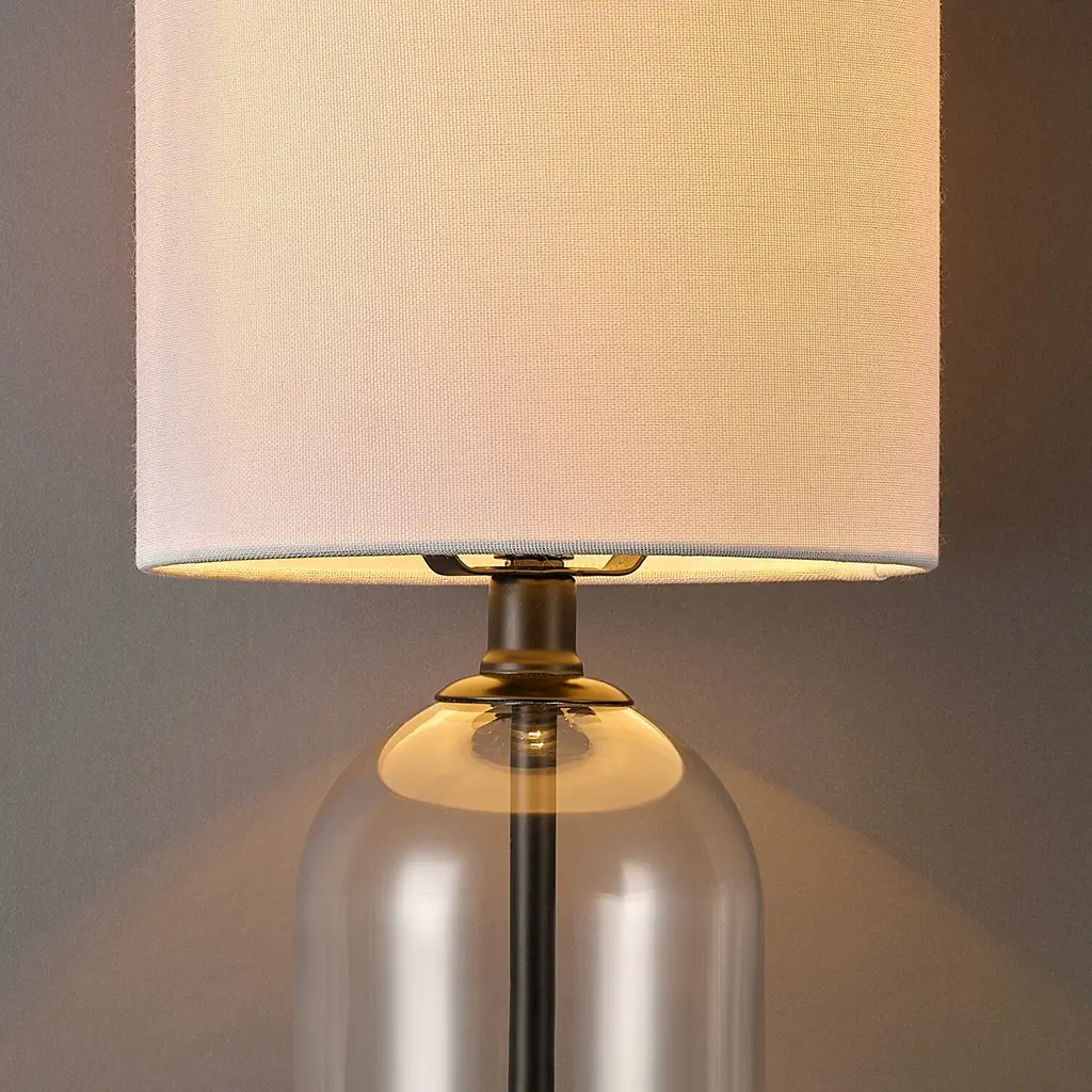 15" Glass Table Lamp With White Linen Shade - 8" - Matte Black - 8"
