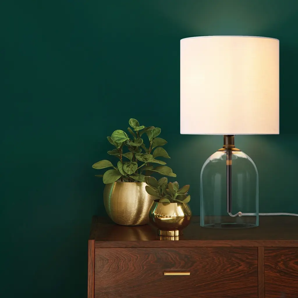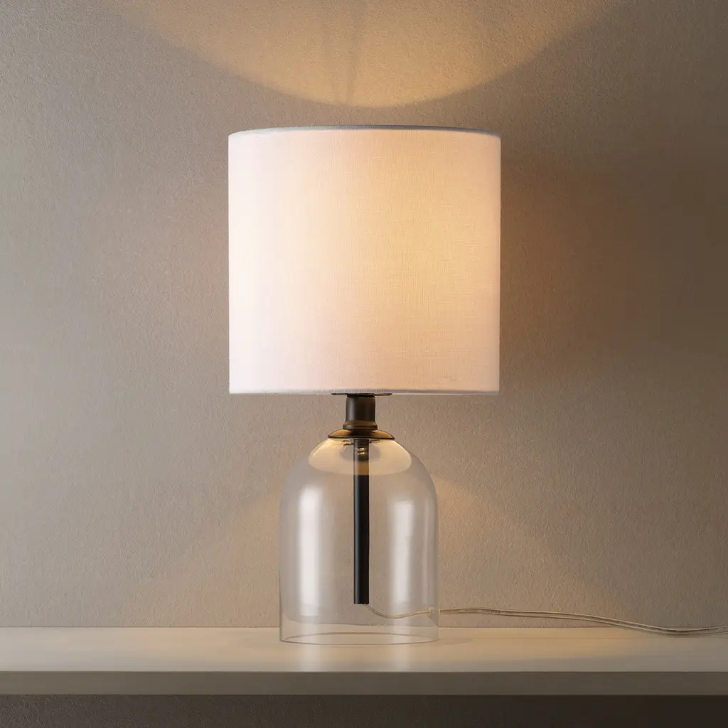 Modernize your living space with the timeless elegance of the Globe Electric 15" Table Lamp. Inspired by mid-century modern design, this stunning lamp combines a matte black finish, clear glass base, and a white linen shade to create a vintage look that exudes glamour and style. The white linen shade not only offers a bright and inviting glow but also adds a classic touch to any room. It diffuses the light beautifully, allowing you to create a warmer or cooler ambiance depending on the type of bulb you choose. Plus, thanks to the convenient 5-foot clear cord, you can easily place this table lamp wherever you need it most, even if the nearest outlet is far away. Enjoy versatile placement options and create the perfect lighting arrangement in any corner of your home! Whether you have a traditional or modern house, the fresh and simplistic design of this lamp will elevate your interior décor!