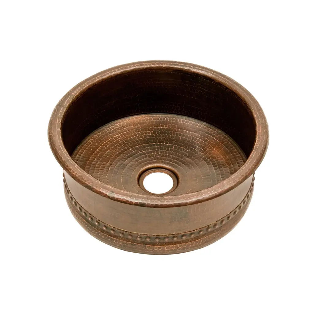 Create a focal point for your bar or prep area as refreshing as the cocktails you will be preparing with a bar or prep sink from Premier Copper Products. Designed to suit your specific needs and style, handcrafted from pure copper by our skilled artisans, and built to last a lifetime, a bar or prep sink is the ultimate way to entertain and cook in style.15" Round Bar Vessel Tub Sink w/ 2" Drain Opening Features:IMPORTANT NOTE: DUE TO THE HANDCRAFTED NATURE OF THIS PRODUCT SMALL VARIANCES IN SIZE AND COLOR MAY OCCUR.INCLUDED:Bar Sink Suggested Accessories: