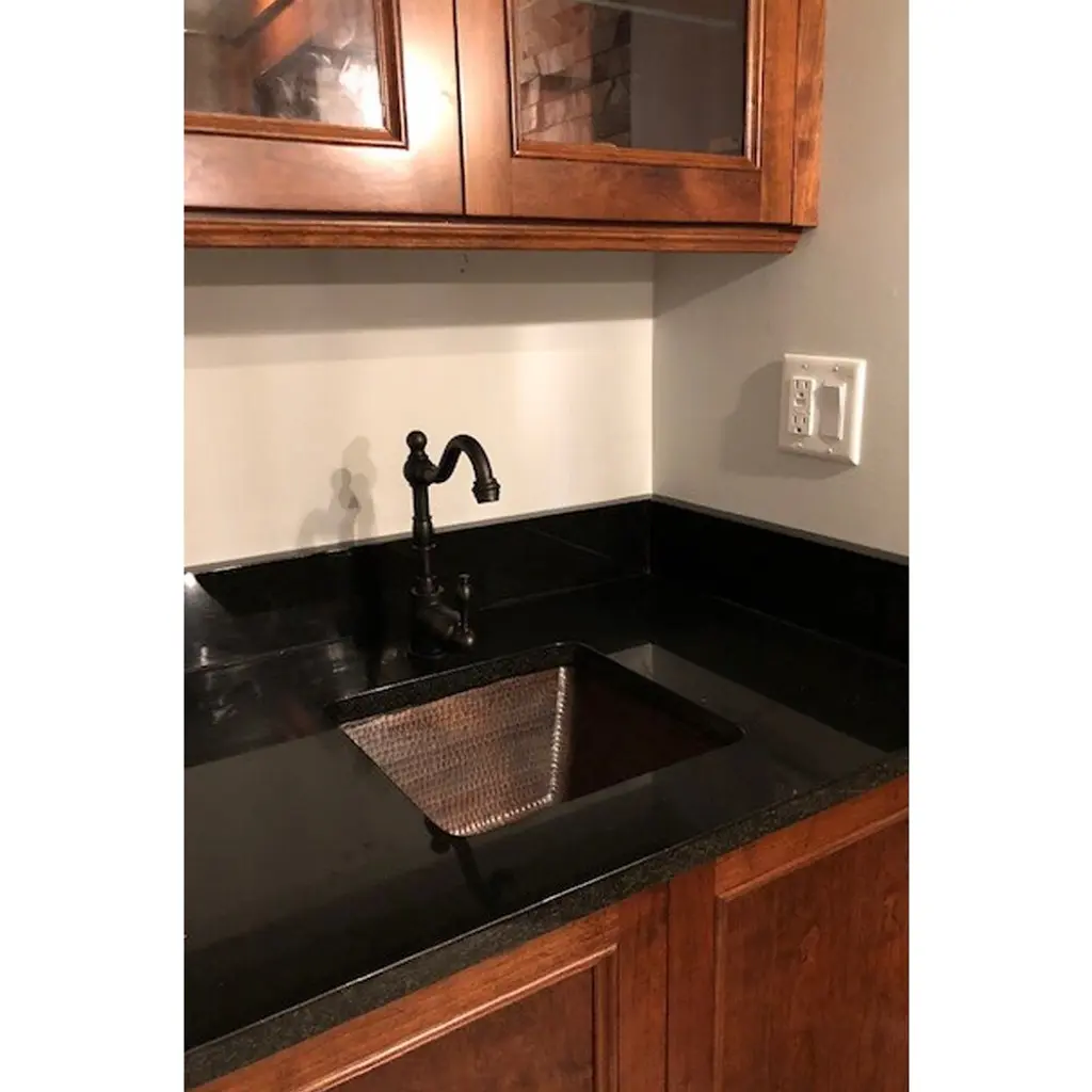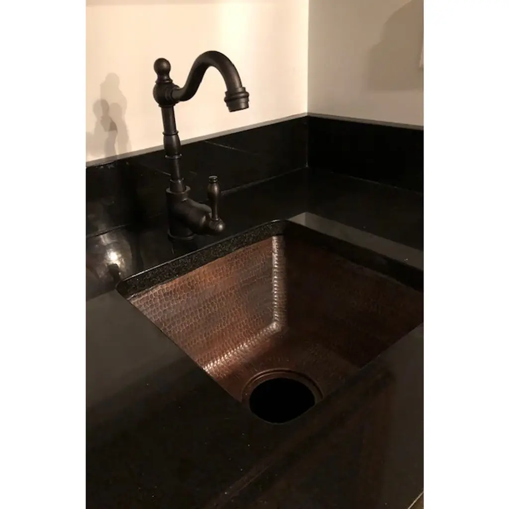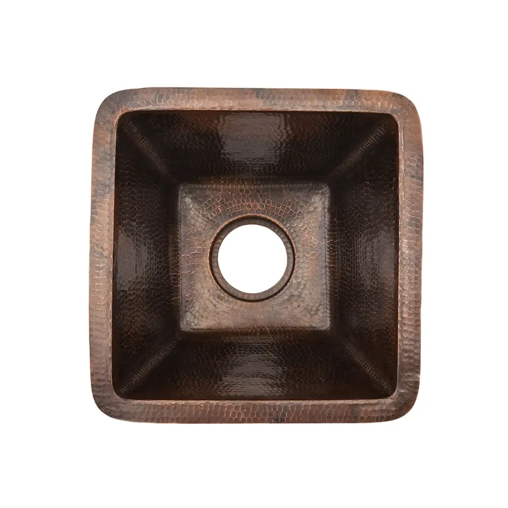 Create a focal point for your bar or prep area as refreshing as the cocktails you will be preparing with a bar or prep sink from Premier Copper Products. Designed to suit your specific needs and style, handcrafted from pure copper by our skilled artisans, and built to last a lifetime, a bar or prep sink is the ultimate way to entertain and cook in style.15" Square Hammered Copper Bar/Prep Sink w/ 3.5" Drain Opening Features:IMPORTANT NOTE: DUE TO THE HANDCRAFTED NATURE OF THIS PRODUCT SMALL VARIANCES IN SIZE AND COLOR MAY OCCUR.INCLUDED:Bar Sink Suggested Accessories:
