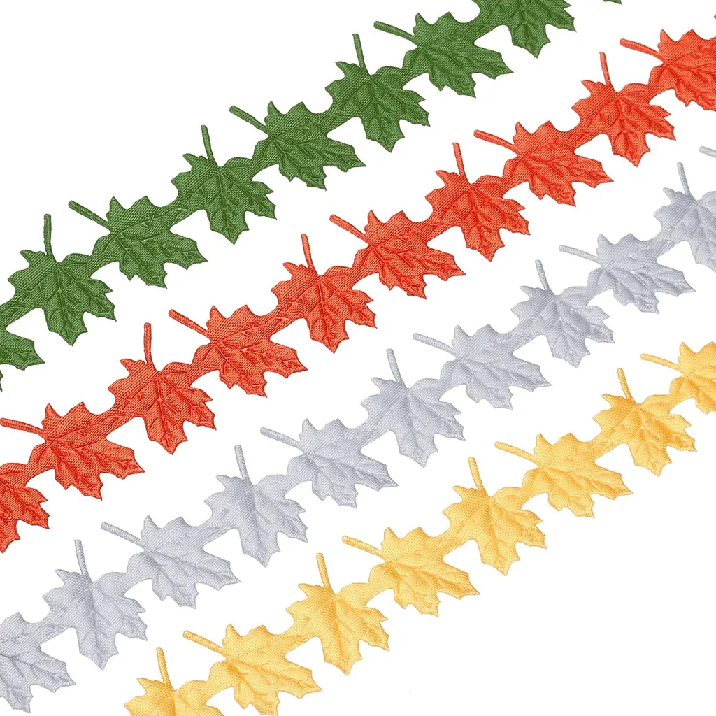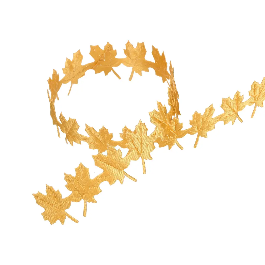 15 Yards Maple Leaf Ribbon, Leaves Trim Rope Artificial Leaf String - Red