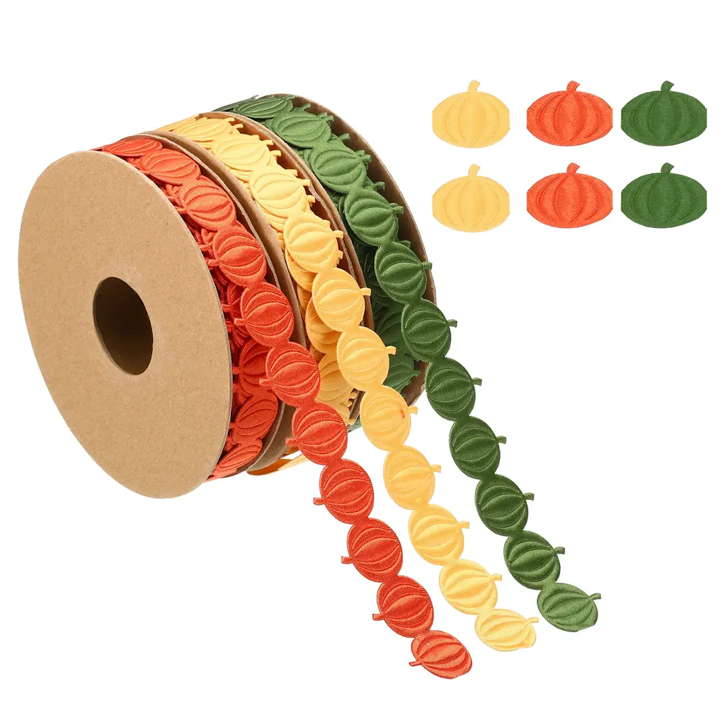 15 Yards Pumpkin Ribbon, 5 Yards Per Roll Pumpkins Trim Rope Pumpkin String - Gold Tone, Green, Red - Gold Tone, Green, Red