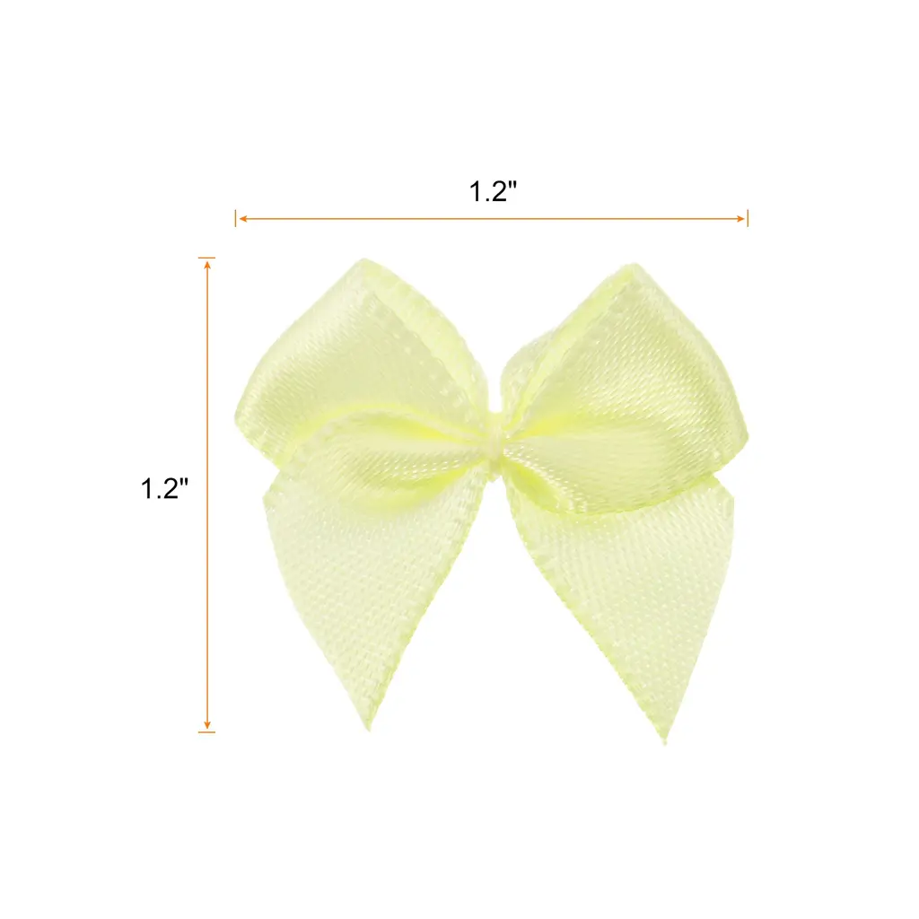 What is this?These ribbon bows are mostly used in the hemming and decoration of leather goods, bags, sleeping bags, tents, and clothing. Because polyester ribbon is soft, they are mostly used for the hemming of softer fabrics.What will I get?The Mini Ribbon Bow, we provide here, is in size of:Material: PolyesterColor: BlackDimension: 1.2 x 1.2 InchIn the package of: 150 x Mini Ribbon BowsAre there any advantages of the product?1. Premium polyester material, fine texture, high washing fastness, no fading, smooth and wrinkle-resistant, flexible to the touch.2. The product is bright in color, fashionable and new in design, and can be used on many occasions. It is suitable for hair accessories, clothing, Christmas gifts, baking decorations, gift box packaging, hotel decorations, wedding decorations, flower packaging, birthday arrangements, etc.How to use it?1. Choose the color of the Mini Ribbon Bow that matches your project or gift wrapping paper. 2. Use twist ties (not included here) or or glue to secure the mini ribbon bows to desired surfaces such as gift boxes, cards, or crafts. 3. Adjust the position of the bow if necessary to get the desired look.What should I notice?Manual measurement, please allow slight errors in size.Please note that there may be a slight color difference between the picture and the actual product, and the color is subject to the actual product received.