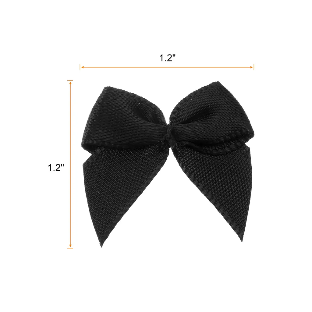 What is this?These ribbon bows are mostly used in the hemming and decoration of leather goods, bags, sleeping bags, tents, and clothing. Because polyester ribbon is soft, they are mostly used for the hemming of softer fabrics.What will I get?The Mini Ribbon Bow, we provide here, is in size of:Material: PolyesterColor: BlackDimension: 1.2 x 1.2 InchIn the package of: 150 x Mini Ribbon BowsAre there any advantages of the product?1. Premium polyester material, fine texture, high washing fastness, no fading, smooth and wrinkle-resistant, flexible to the touch.2. The product is bright in color, fashionable and new in design, and can be used on many occasions. It is suitable for hair accessories, clothing, Christmas gifts, baking decorations, gift box packaging, hotel decorations, wedding decorations, flower packaging, birthday arrangements, etc.How to use it?1. Choose the color of the Mini Ribbon Bow that matches your project or gift wrapping paper. 2. Use twist ties (not included here) or or glue to secure the mini ribbon bows to desired surfaces such as gift boxes, cards, or crafts. 3. Adjust the position of the bow if necessary to get the desired look.What should I notice?Manual measurement, please allow slight errors in size.Please note that there may be a slight color difference between the picture and the actual product, and the color is subject to the actual product received.