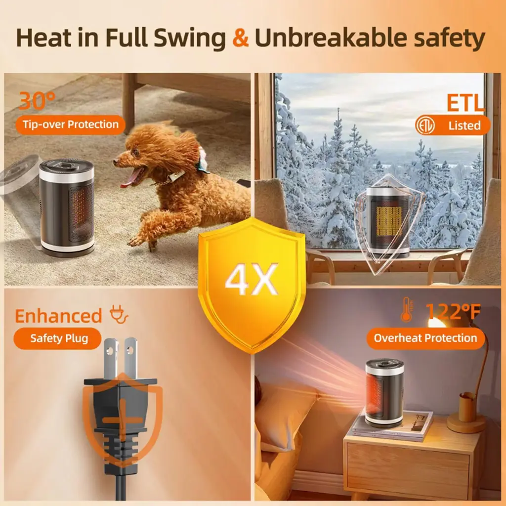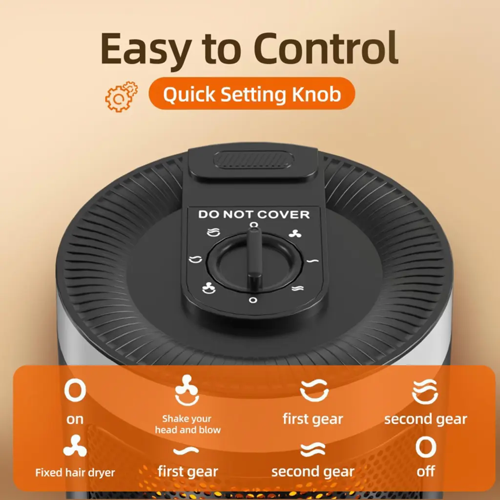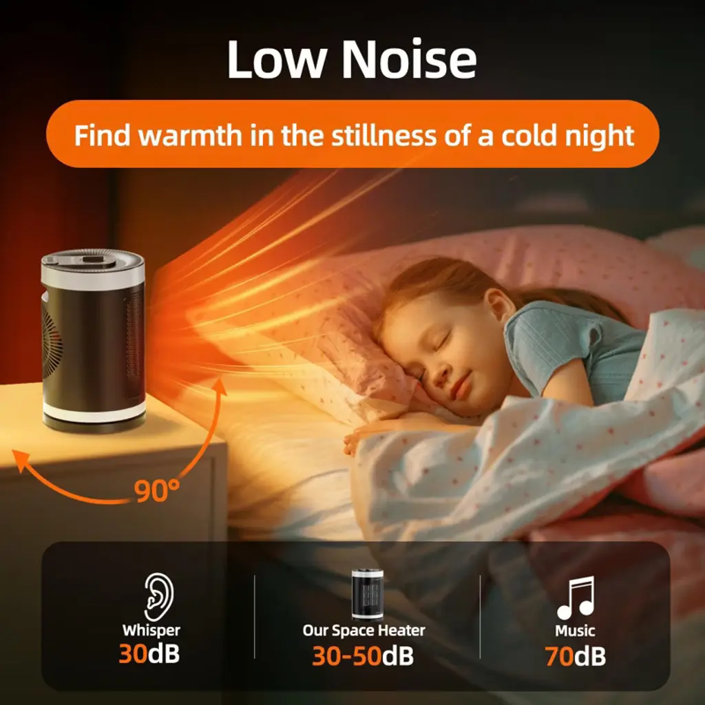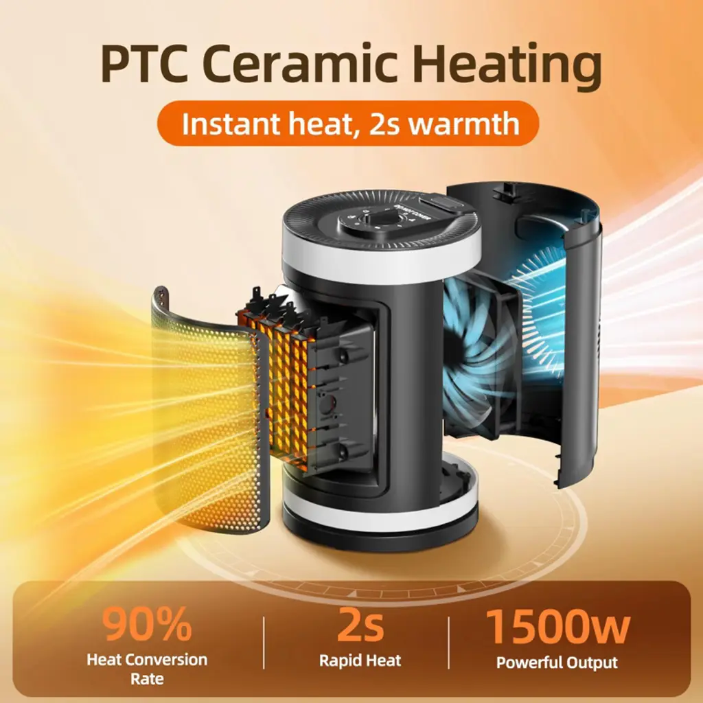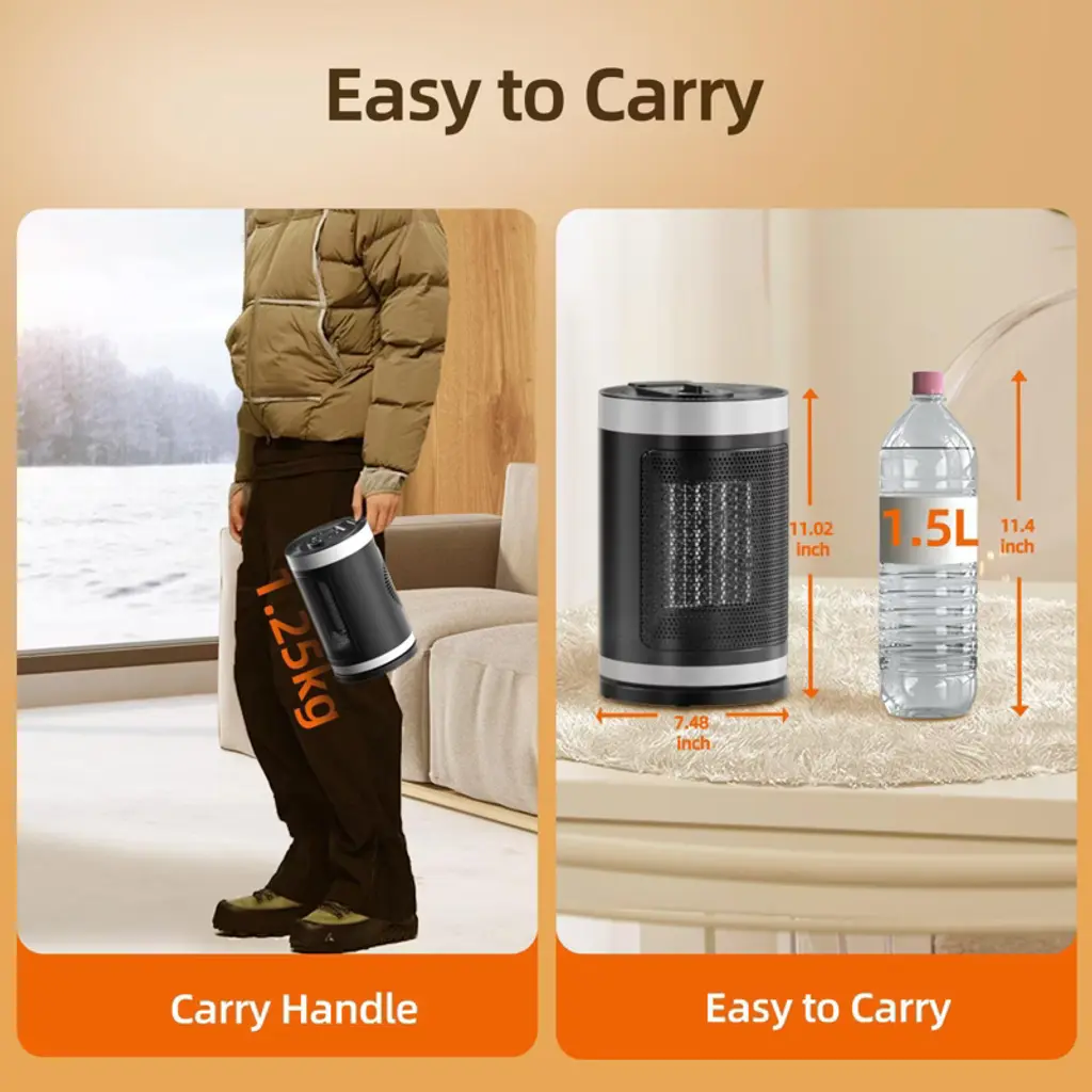 Stay warm and comfortable during chilly days with this 1500W Portable Ceramic Space Heater. Designed with powerful PTC ceramic heating technology, it quickly delivers consistent warmth for small to medium spaces such as bedrooms, offices, and dorm rooms. The simple mechanical control design makes it easy to use—just turn the rotary knobs to adjust between high/low heat or fan-only mode. No remote, no digital display, only straightforward comfort at your fingertips. Safety is always a priority: the heater is equipped with overheat protection and a tip-over switch, which automatically shut off the unit if it overheats or is accidentally knocked over, preventing fire hazards. Unlike noisy fan heaters, this unit operates quietly, making it suitable for work, study, or restful sleep. Its compact and portable design with a built-in carry handle allows you to move it easily from room to room. With reliable performance and a 1-year hassle-free warranty, this portable heater is your perfect winter companion.