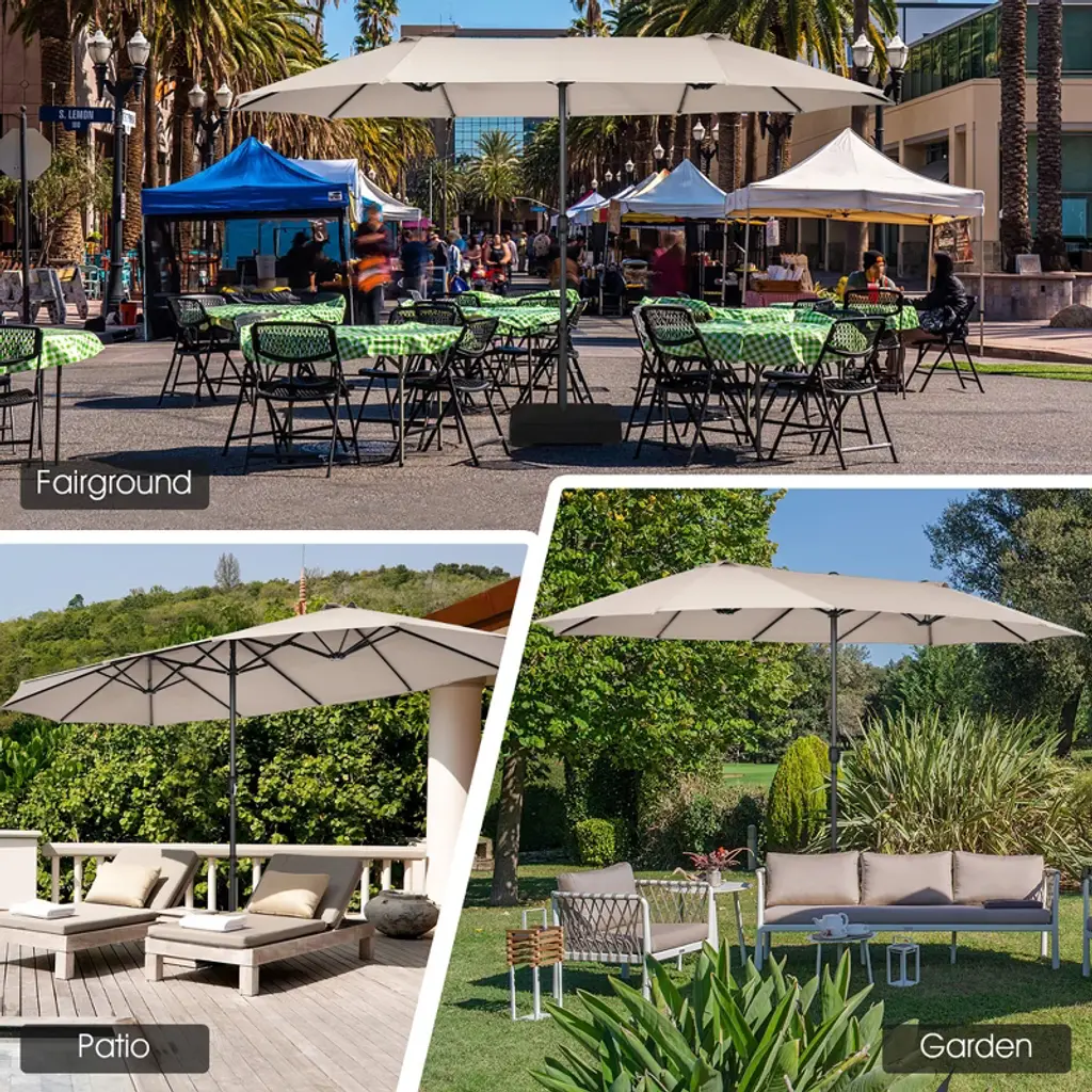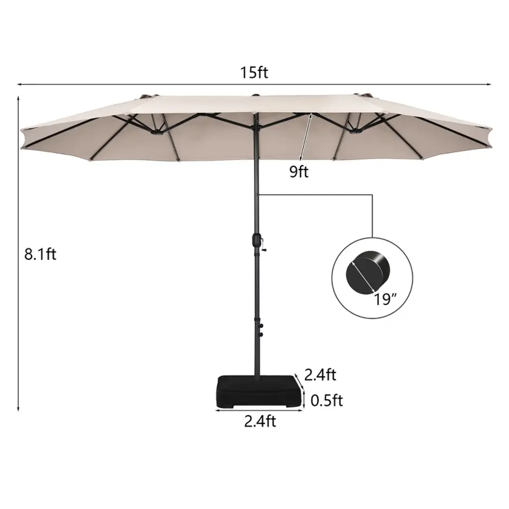 15ft Double-sided Twin Patio Umbrella Sun Shade Outdoor Crank Market Base Beige