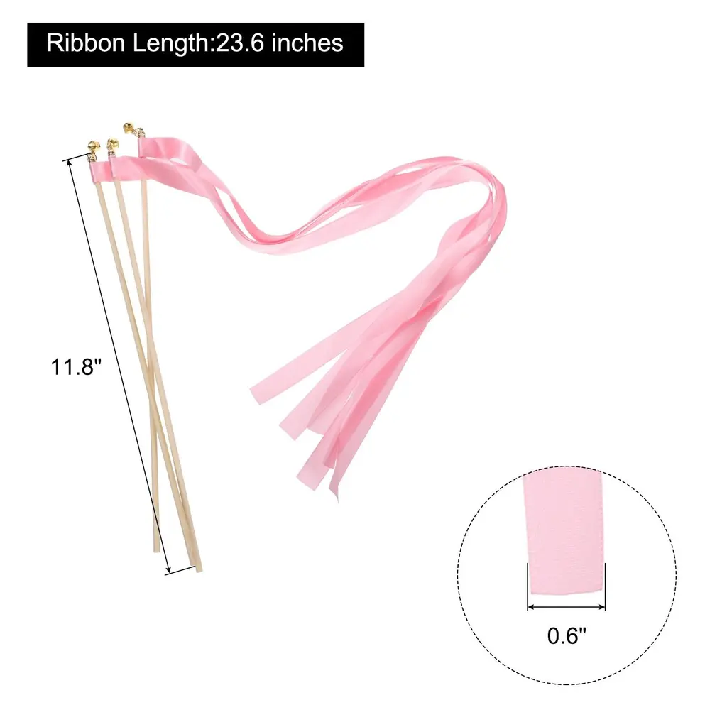 What is this?This wedding ribbon sticks can be used as decorations for various celebratory events, such as birthday parties, wedding, graduation parties, and more.What will I get?Wedding ribbon sticks x 15Pcs;Color:Golden, White, Black;Wand Length:11.8 inches;Ribbon Length:23.6 inches;Width:0.6 inches;Material:Ribbons. Are there any advantages of the product?The ribbon sticks have a unique design that adding fun to your occasion. They are perfect for creating a warm and moving atmosphere for your event, especially for wedding-themed parties.How to use it?These ribbon sticks are easy to hold and wave.Simply hold the wand and wave it to create beautiful patterns with the ribbons.What should I notice?Please keep these ribbon sticks away from fire.