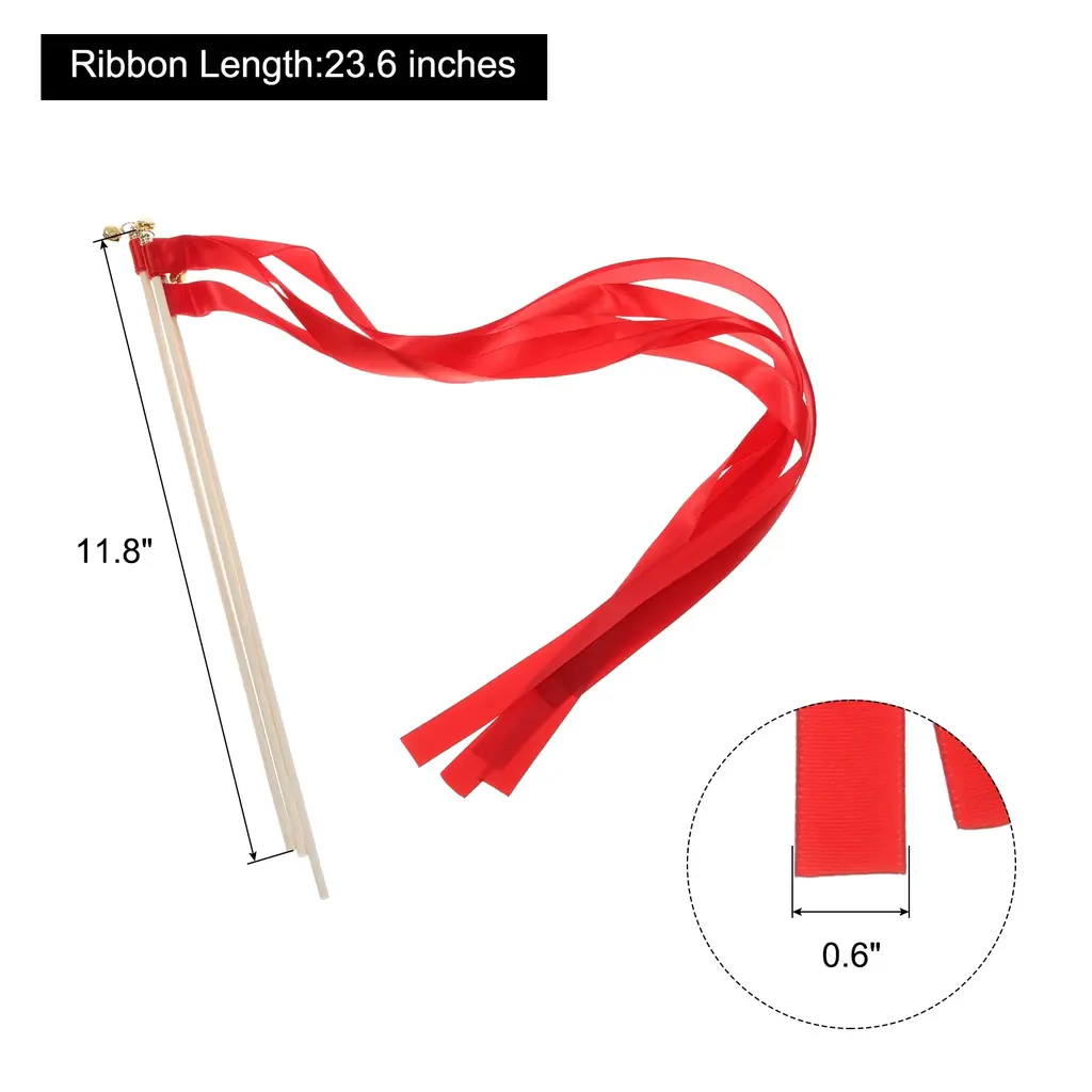 What is this?This wedding ribbon sticks can be used as decorations for various celebratory events, such as birthday parties, wedding, graduation parties, and more.What will I get?Wedding ribbon sticks x 15Pcs;Color:Golden, White, Black;Wand Length:11.8 inches;Ribbon Length:23.6 inches;Width:0.6 inches;Material:Ribbons. Are there any advantages of the product?The ribbon sticks have a unique design that adding fun to your occasion. They are perfect for creating a warm and moving atmosphere for your event, especially for wedding-themed parties.How to use it?These ribbon sticks are easy to hold and wave.Simply hold the wand and wave it to create beautiful patterns with the ribbons.What should I notice?Please keep these ribbon sticks away from fire.
