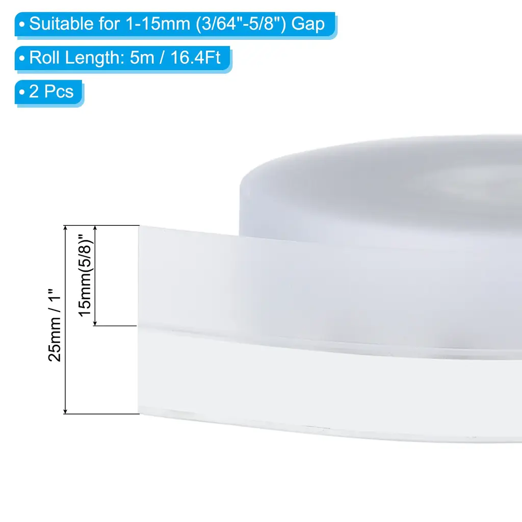 16.4ft Weather Stripping Door Seal, 2 Roll Silicone Sealing Tape - Transparent - 1"