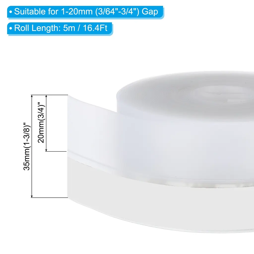 Our door weather stripping is widely used in door frames, and large gaps to soundproof, dustproof, windproof, anti-collison, etc. Providing a quiet and comfortable environment for you.The door weather sealer is suitable for sliding window, doors, or swing doors, such as sliding doors, security doors, patio doors, glass doors, balcony doors, wardrobe doors, cabinet doors, etc.SpecificationMaterial: SiliconeColor:TransparentRoll Length: 5m/16.4FtSize: 25 x 0.8mm/1 x 1/32 inch (WxT)Applicable Gap Size: 1-15mm/3/64"-5/8"Package List: 1 Roll x Door Weather StrippingAdvantageOur door weather sealer is made of quality silicone, not easy to tear and deform for durable use. Door weather sealer has high flexibility and resilience, can be bent to fit doors and window, and anti-collision to reduce impact. It is waterproof, can be used in wet places such as bathrooms and toilets. Self-adhesive design, strong stickiness, not easy to fall off, match different ranges of gaps, providing a better sealing effect for insulation, windproof, soundproof, dustproof, etc.InstructionThe door weather stripping uses a self-adhesive design, measure the length of the area that needs to be sealed, cut out the required length, peel off the backing and stick the sealing strip to the corresponding position.NOTEPlease keep the surface clean and dry before applying the tape for better adhesion.