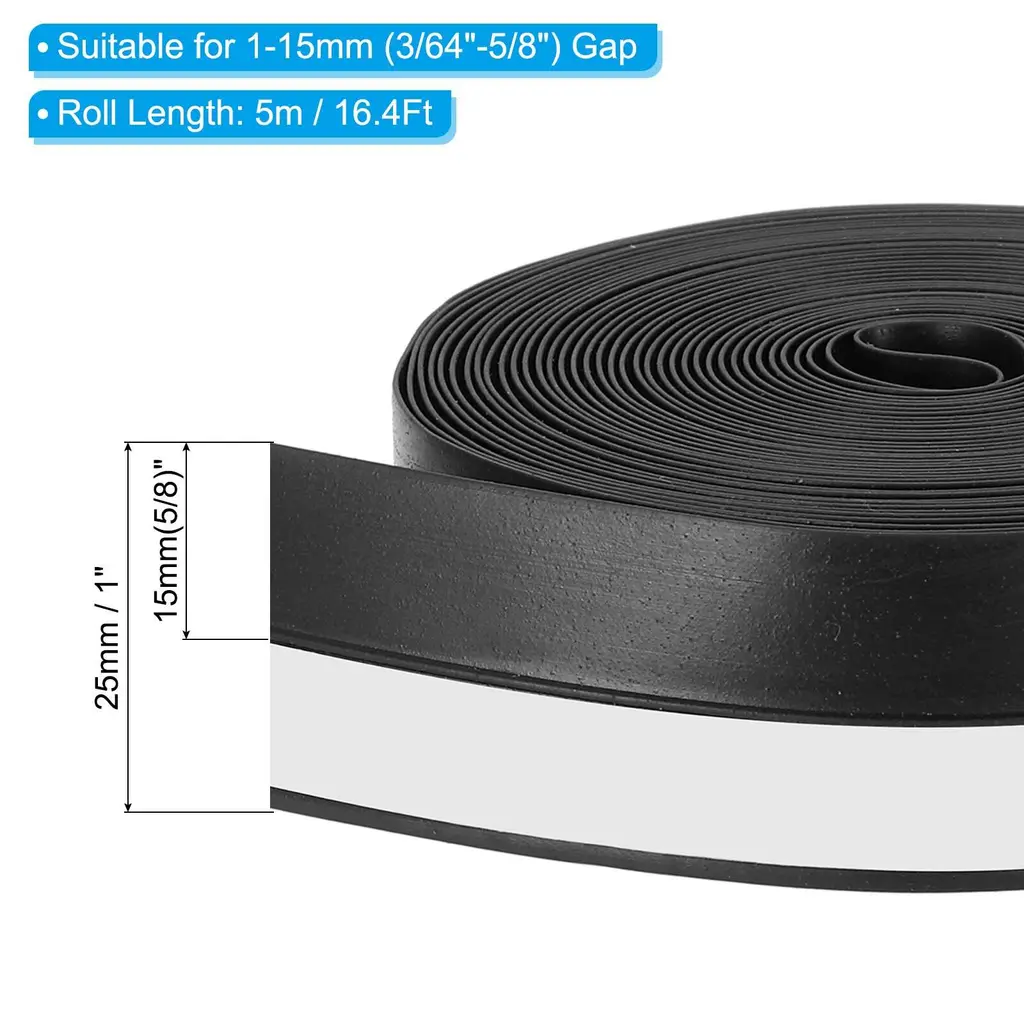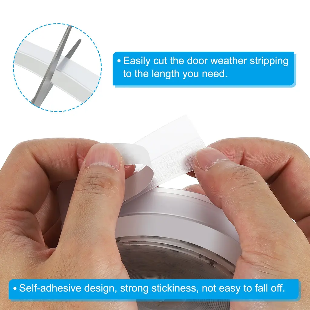 Our door weather stripping is widely used in door frames, and large gaps to soundproof, dustproof, windproof, anti-collison, etc. Providing a quiet and comfortable environment for you.The door weather sealer is suitable for sliding window, doors, or swing doors, such as sliding doors, security doors, patio doors, glass doors, balcony doors, wardrobe doors, cabinet doors, etc.SpecificationMaterial: SiliconeColor:TransparentRoll Length: 5m/16.4FtSize: 25 x 0.8mm/1 x 1/32 inch (WxT)Applicable Gap Size: 1-15mm/3/64"-5/8"Package List: 1 Roll x Door Weather StrippingAdvantageOur door weather sealer is made of quality silicone, not easy to tear and deform for durable use. Door weather sealer has high flexibility and resilience, can be bent to fit doors and window, and anti-collision to reduce impact. It is waterproof, can be used in wet places such as bathrooms and toilets. Self-adhesive design, strong stickiness, not easy to fall off, match different ranges of gaps, providing a better sealing effect for insulation, windproof, soundproof, dustproof, etc.InstructionThe door weather stripping uses a self-adhesive design, measure the length of the area that needs to be sealed, cut out the required length, peel off the backing and stick the sealing strip to the corresponding position.NOTEPlease keep the surface clean and dry before applying the tape for better adhesion.