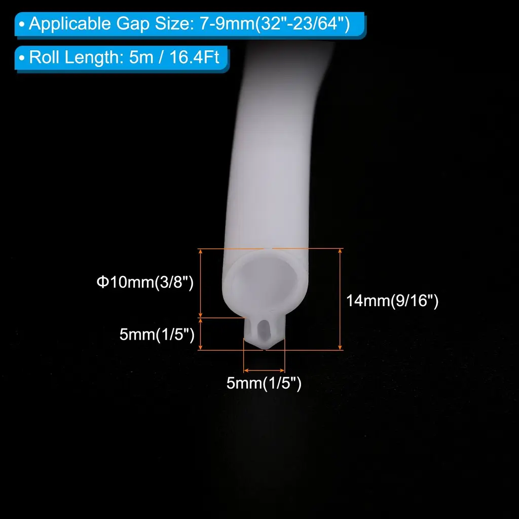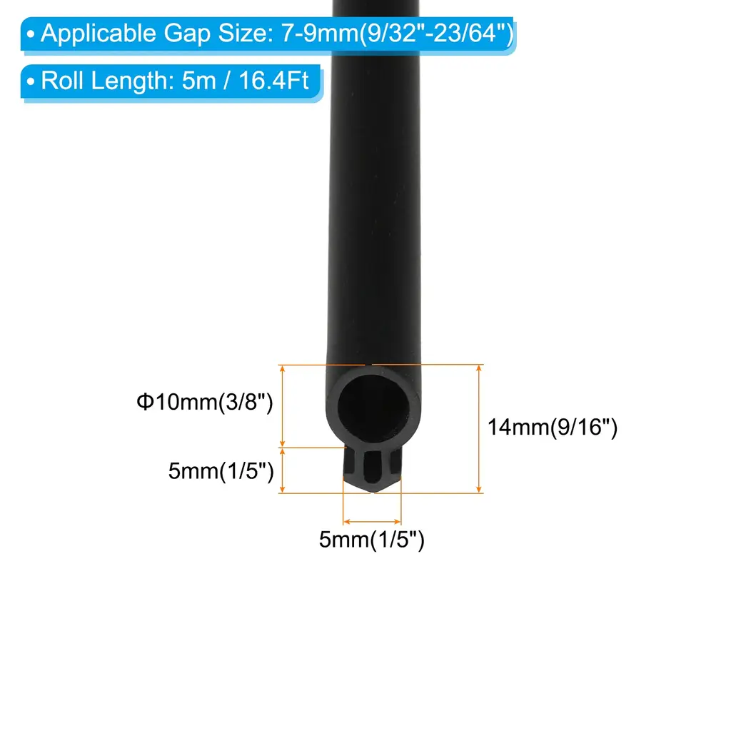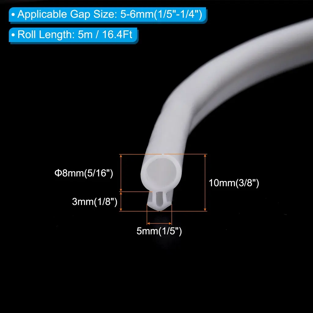 Our door weather stripping is widely used in door frames, and large gaps for sealing purpose, it can reduce heat loss while keeping dust and noise out for your home, providing you a quiet and comfortable environment. In addition, it can reduce collision and wear on window/door while opening and closing.The door draft stopper is suitable for various types of sliding window, doors, or swing doors, such as security doors, patio doors, glass doors, balcony doors, wardrobe doors, cabinet doors, etc.SpecificationMaterial: TPE RubberColor: BlackRoll Length: 5m/16.4FtBulb Bubble Diameter: 8mm/ 5/16"Kerf Size: 3 x 5mm/ 1/8 x 1/5inch (LxW)Height: 10mm/ 3/8"Applicable Gap Size: 5-6mm/ 1/5"-1/4"Package List: 1 Roll x Door Weather StrippingAdvantageOur door weather sealer is made of PET rubber, is wear-resistant, not easy to tear and deform for durable use. Soft to easily bend different shapes for required use. door weather sealer has high resilience, quick rebound after pressing, effective anti-collision, and reducing impact. Unique shape design fits the door seam better, flange part is hard enough to catch the slot for easy installation, providing a better sealing effect for insulation, windproof, soundproof, dustproof, etc.InstructionThe unique design of our weather stripping supplies a good fit into the slot channel. The unique design of our weather stripping supplies a good fit into the slot channel. Use the screwdriver to pry out the old door sealing strip, and press our door sealing strip directly into the installation slot. To used as replacement seals on old door frames, window, etc.NOTE1. After receiving our products, please place the sealing strip in a dry and ventilated place first2. Please check the size before purchasing.