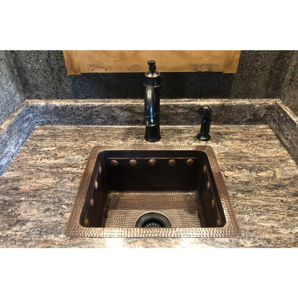 16-In Gourmet Rectangular Hammered Copper Bar/prep Sink W/ Barrel Strap Design (Brec16dbbs) - Oil Rubbed Bronze