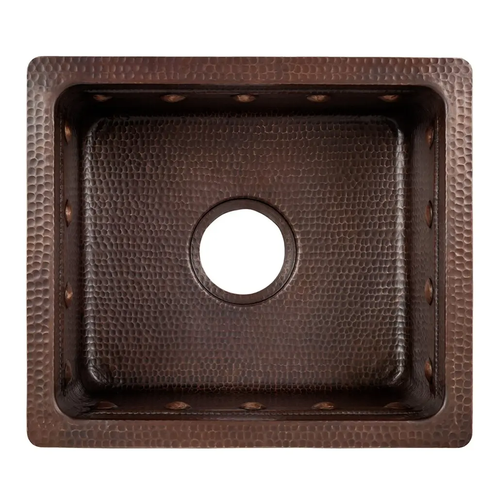 Create a focal point for your bar or prep area as refreshing as the cocktails you will be preparing with a bar or prep sink from Premier Copper Products. Designed to suit your specific needs and style, handcrafted from pure copper by our skilled artisans, and built to last a lifetime, a bar or prep sink is the ultimate way to entertain and cook in style.16" Gourmet Rectangular Hammered Copper Bar/Prep Sink w/ Barrel Strap Design Features:IMPORTANT NOTE: DUE TO THE HANDCRAFTED NATURE OF THIS PRODUCT SMALL VARIANCES IN SIZE AND COLOR MAY OCCUR.INCLUDED:Bar Sink Suggested Accessories: