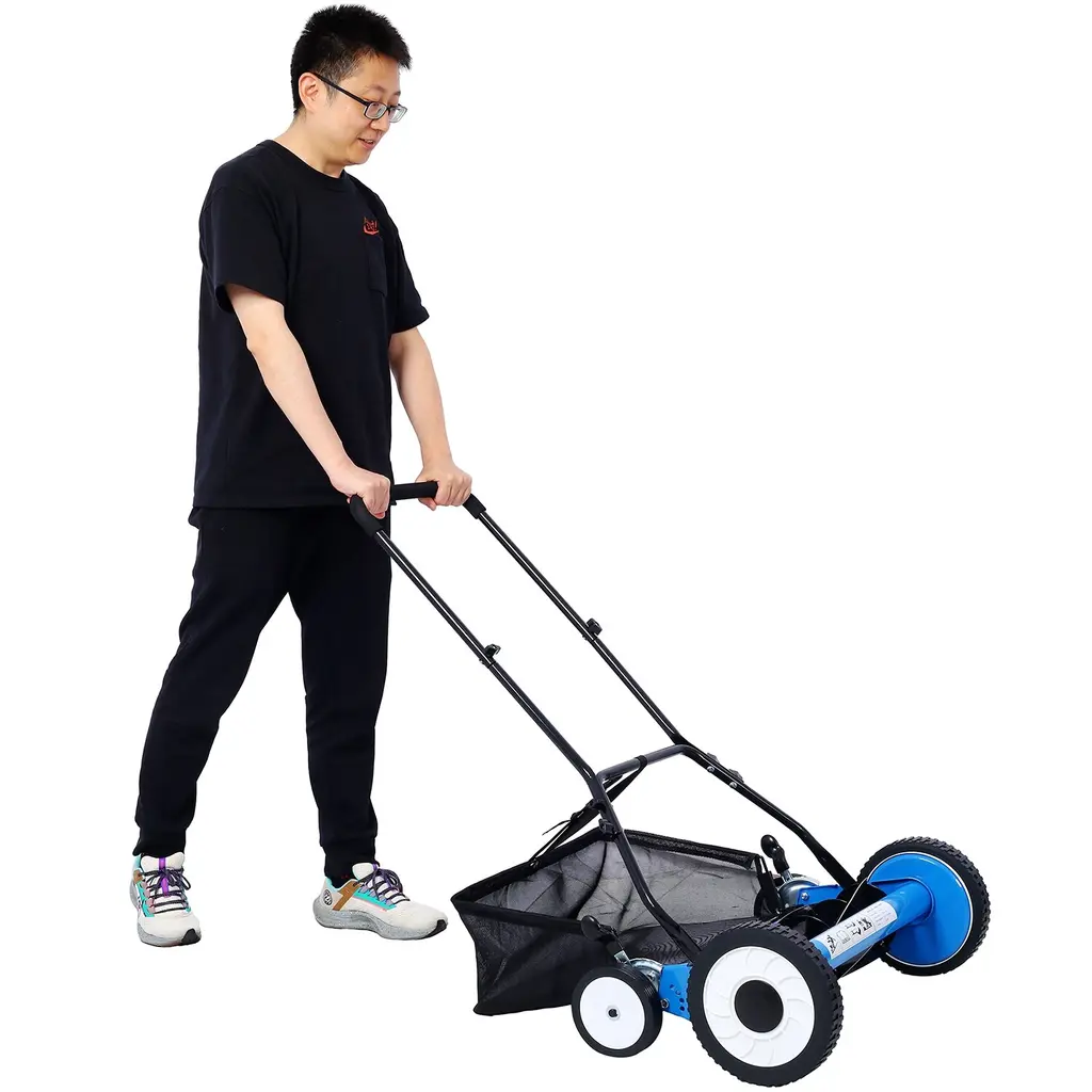 16-inch Lawn Mower 5-blade Reel Mower Push Reel Lawn Mower With Grass Catcher, 0.6 In-1.8 In Adjustable Blade Height For Garden Patio Sweeper, Blue