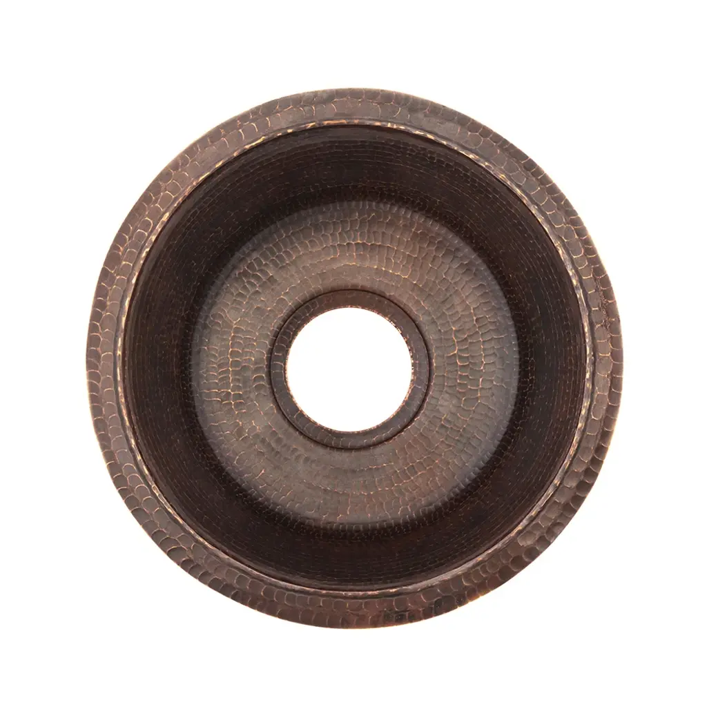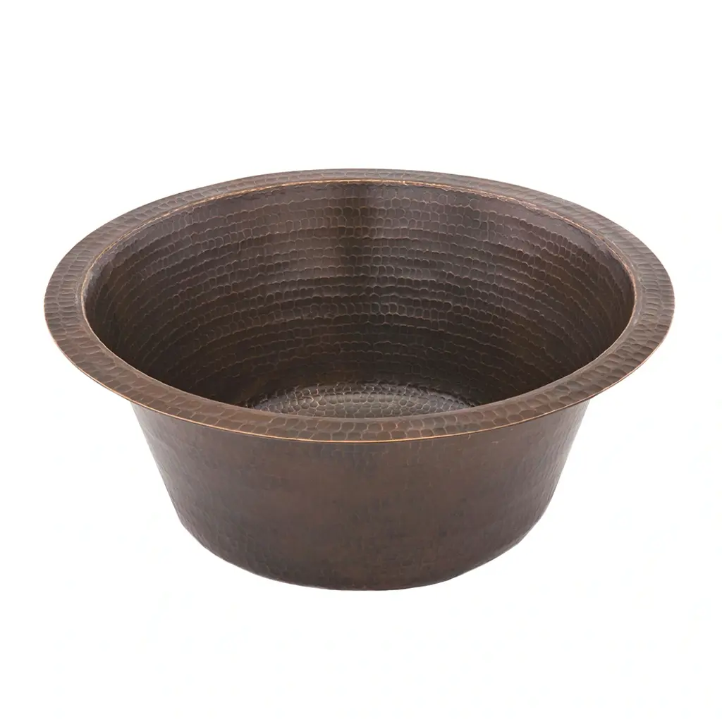 16" Round Hammered Copper Prep Sink W/ 3.5" Drain Opening, Matching Drain And Accessories - Brown