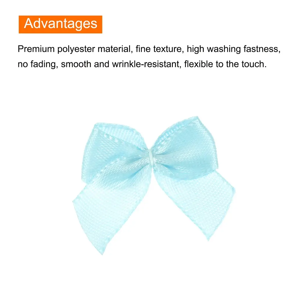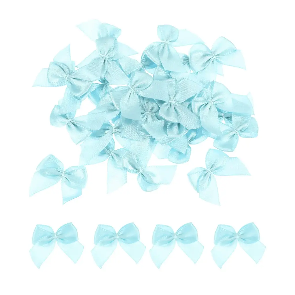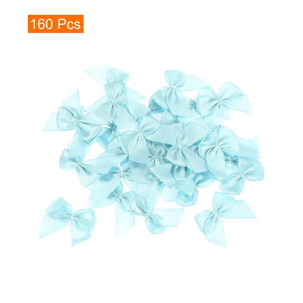 What is this?These ribbon bows are mostly used in the hemming and decoration of leather goods, bags, sleeping bags, tents, and clothing. Because polyester ribbon is soft, they are mostly used for the hemming of softer fabrics.What will I get?The Mini Ribbon Bow, we provide here, is in size of:Material: PolyesterColor: Light BlueDimension: 1 x 1 inchIn the package of: 160 x Mini Ribbon BowsAre there any advantages of the product?1. Premium polyester material, fine texture, high washing fastness, no fading, smooth and wrinkle-resistant, flexible to the touch.2. The product is bright in color, fashionable and new in design, and can be used on many occasions. It is suitable for hair accessories, clothing, Christmas gifts, baking decorations, gift box packaging, hotel decorations, wedding decorations, flower packaging, birthday arrangements, etc.How to use it?1. Choose the color of the Mini Ribbon Bow that matches your project or gift wrapping paper. 2. Use twist ties (not included here) or or glue to secure the mini ribbon bows to desired surfaces such as gift boxes, cards, or crafts. 3. Adjust the position of the bow if necessary to get the desired look.What should I notice?Manual measurement, please allow slight errors in size.Please note that there may be a slight color difference between the picture and the actual product, and the color is subject to the actual product received.