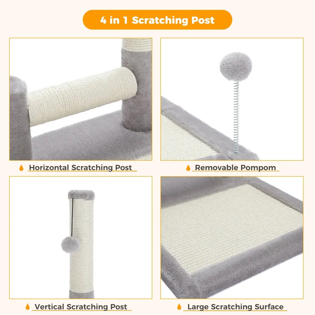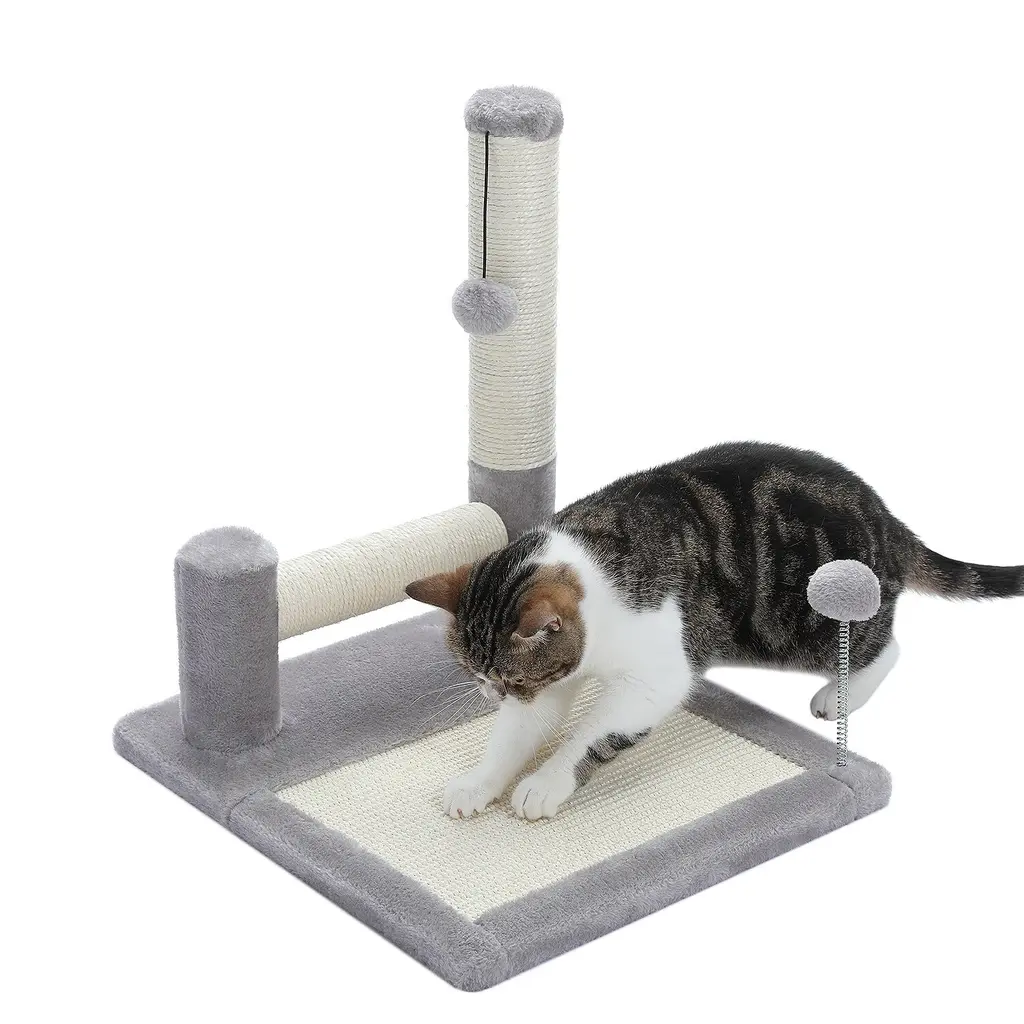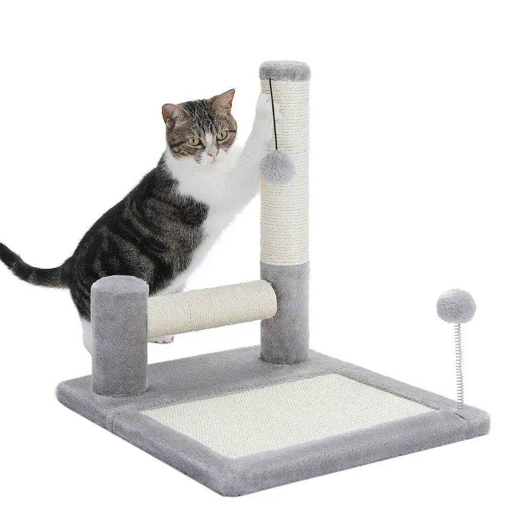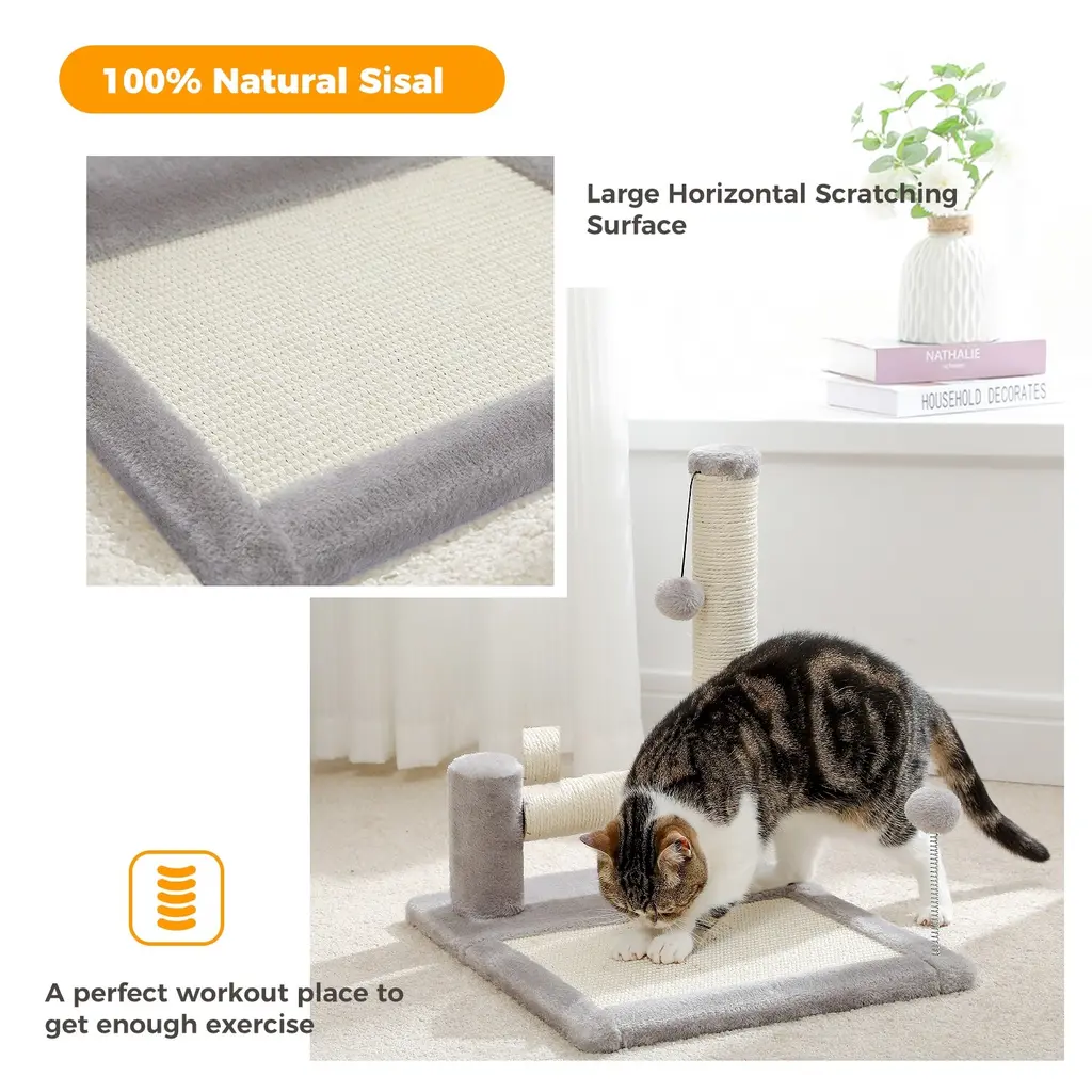 Enhance your small cat's indoor experience with our 17.7" High Indoor Cat Scratching Post. Designed specifically for small cats, this durable tower features a sisal-covered surface that encourages natural scratching behavior while providing long-lasting durability. Optimal Height for Small Cats: Standing at 17.7 inches, this cat scratching post is perfectly sized for indoor small cats, ensuring they can fully stretch and enjoy their playtime without overwhelming larger spaces. Durable Sisal Covering: The tower is wrapped in high-quality sisal fiber, providing an ideal surface for your cat to scratch. This material mimics the texture of tree bark, encouraging natural scratching behavior while being highly durable. Integrated Toy Ball and Scratching Pad: Equipped with a fun toy ball and a dedicated scratching pad, this post offers multiple forms of entertainment and engagement for your cat. The combination keeps them mentally stimulated and physically active. Encourages Healthy Behavior: By offering a designated area for scratching and playing, this post helps redirect your cat's natural instincts away from furniture, promoting healthy behavior and reducing damage to household items. Stylish and Functional Design: The sleek design of this cat scratching post not only fits seamlessly into any home decor but also provides a functional and engaging environment for your feline friend. It's both aesthetically pleasing and practical.