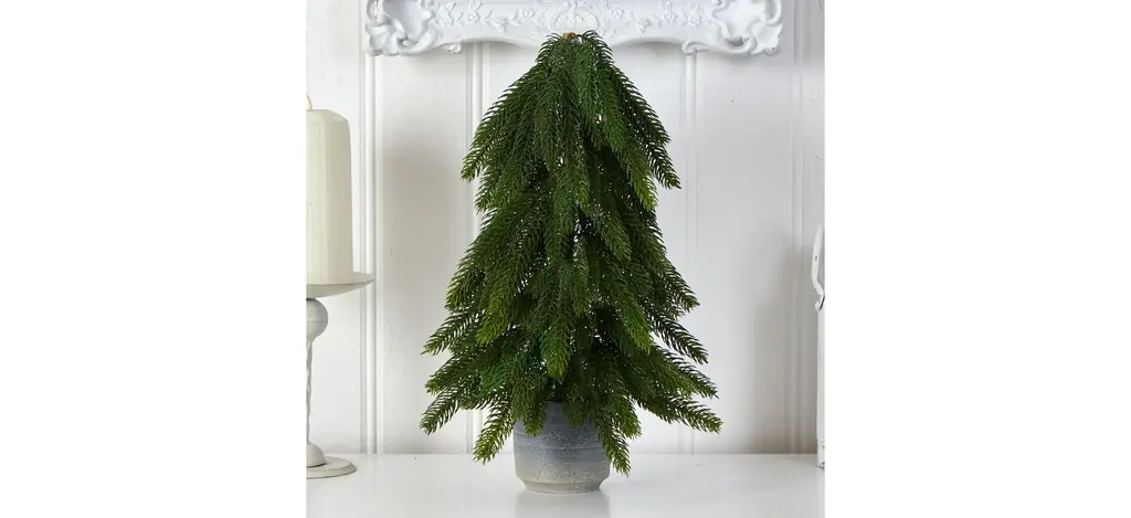 Spread Christmas cheer to your tabletops with this desktop 17" Christmas Pine Artificial Tree in Decorative Planter. Recreate a winter landscape with the thick branches that look lifelike. Hang all your favorite Christmas ornaments quickly and effortlessly, and you can even illuminate with your favorite lights. Perfect for a kids' room, office or mantel. Your artificial Christmas Tree will look beautiful for years to come; simply wipe clean with a soft dry cloth when needed.
