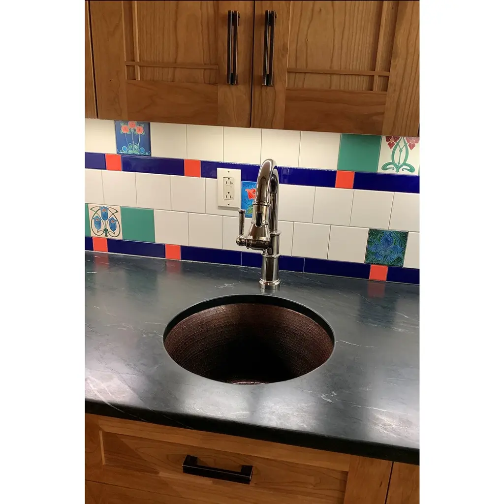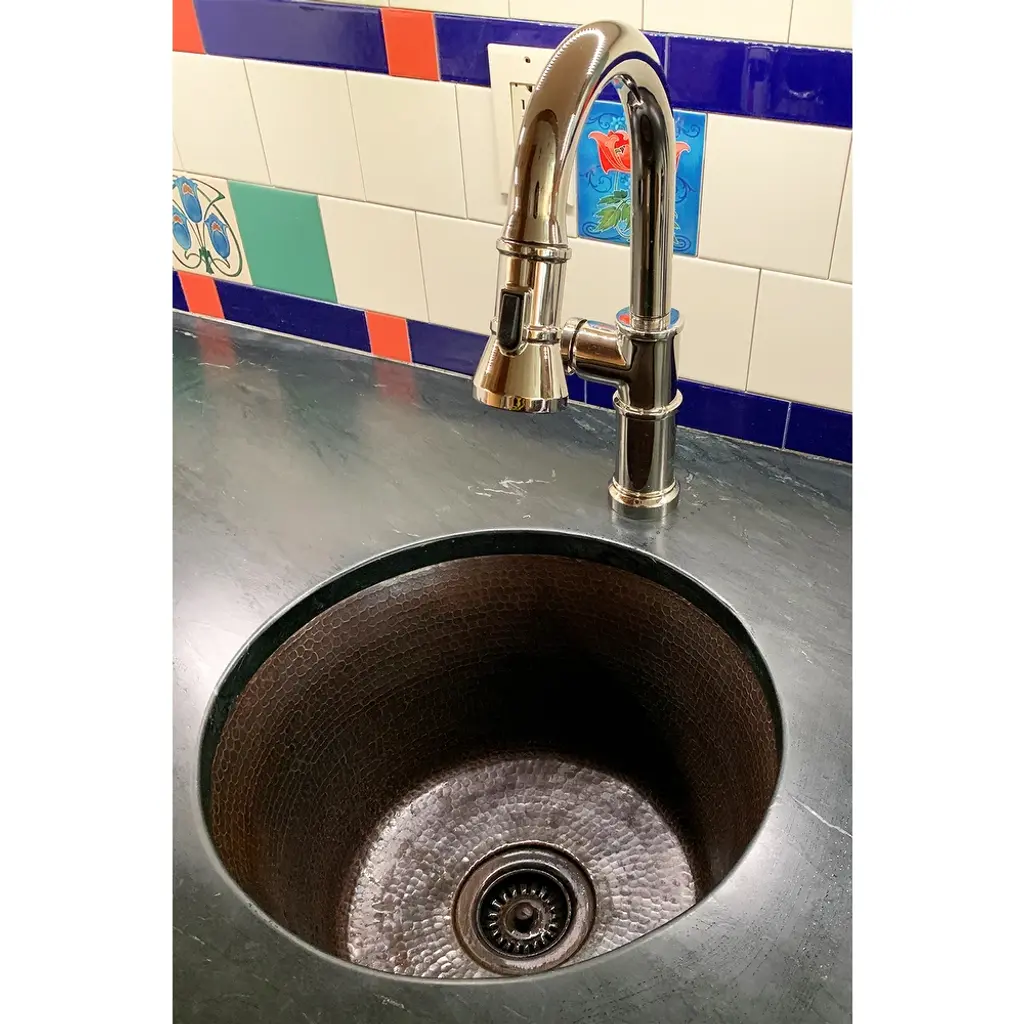 Create a focal point for your bar or prep area as refreshing as the cocktails you will be prepared with a bar or prep sink from Premier Copper Products. Designed to suit your specific needs and style, handcrafted from pure copper by our skilled artisans, and built to last a lifetime, a bar or prep sink is the ultimate way to entertain and cook in style.17" Large Round Hammered Copper Bar/Prep Sink Features:IMPORTANT NOTE: DUE TO THE HANDCRAFTED NATURE OF THIS PRODUCT SMALL VARIANCES IN SIZE AND COLOR MAY OCCUR.INCLUDED:Bar Sink Suggested Accessories: