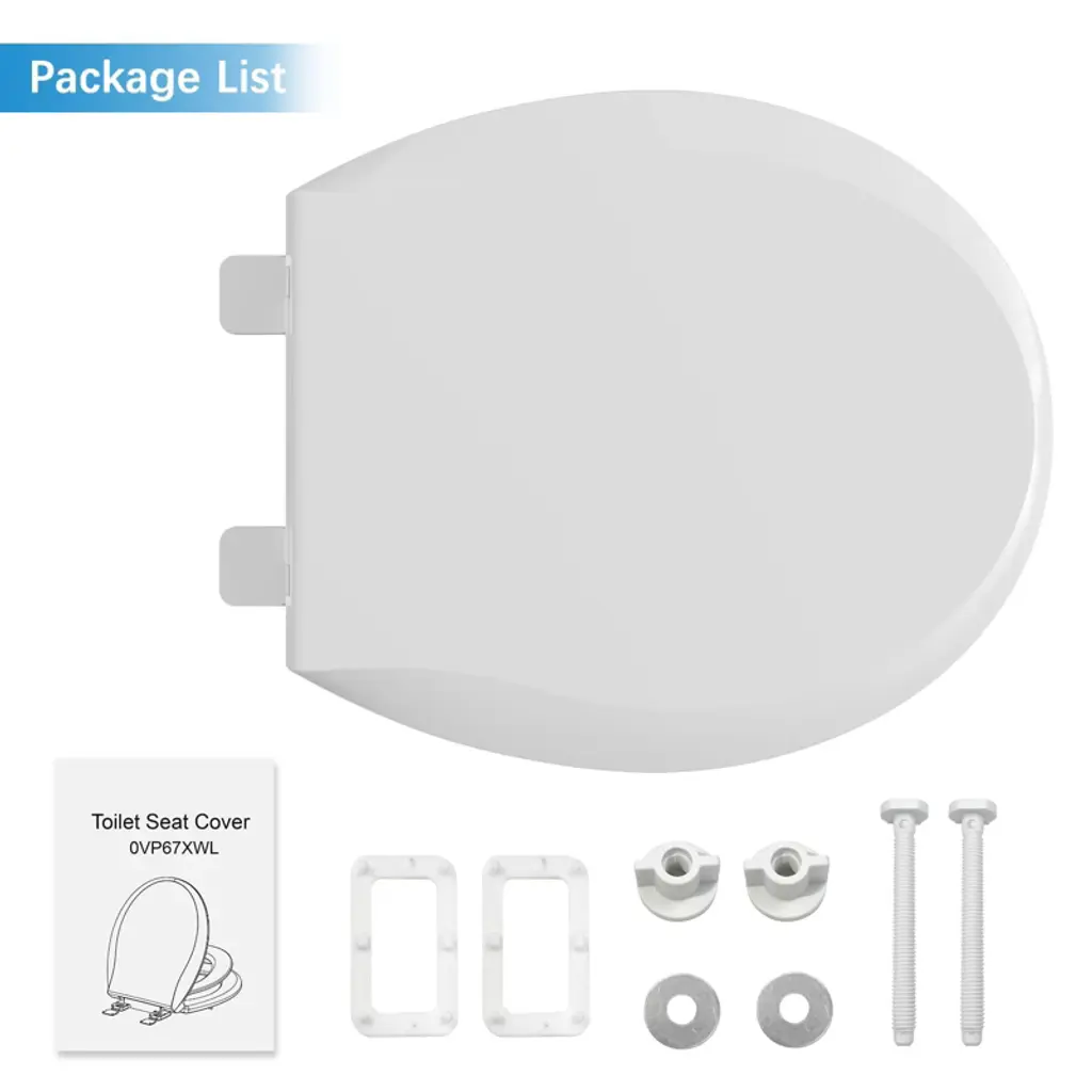 【Easy to Install&Clean】- The quick-detach design makes it quick and easy to install or remove; Screws required for installation are included in the package, in addition, we also offer two rubber pads to protect the hinge. After use, you can easily clean the toilet seat with a paper towel or rag. 【Durable Thick Material】- This round toilet seat is made of high-quality thick polypropylene plastic, which is resistant to stains, chips, scratches, cracks on the surface; Compared with ordinary plastic and wood, it is stronger, durable, non-fading, and non-deformable. 【Slow and Quite Close】- The toilet seat closes slowly and quietly, without slamming, can increases a quiet experience during sleeping time, also can ensure that the toilet seat is not impacted and extend the life of the toilet seat lid. Brings a quiet indoor environment for your family. 【Size: Round】- This is an ROUND toilet seat. Standard Size Length:16.2-16.7 inch, Width:14.2 inch, the mounting hole distance 5.15-6.18 inche, it's suitable for most standard round toilet bowls; Please measure your toilet before ordering. 【Fits Both Adult and Child】- This toilet seat with toddler seat built in, suitable adult and child seat ring size, meet all family members' need; Single Magnet designed for child toilet seat make child to pull down easily and improve children's on potty using.