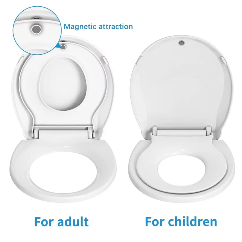 17" Round Toilet Seat With Built-in Toddler Seat, Ideal For Potty Training, Slow Close With Magnets, Fits Adults & Kids - Easy Installation