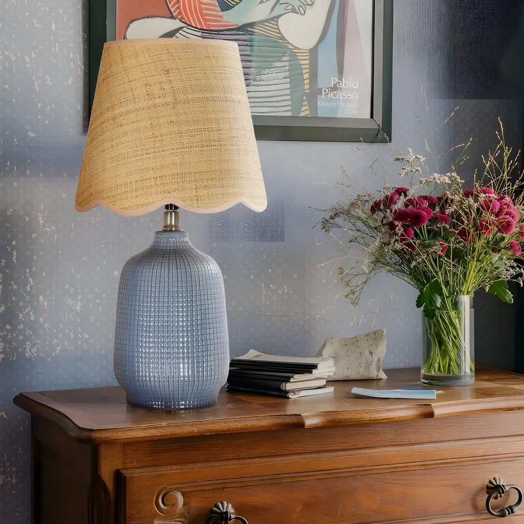 This modern, minimalist table lamp brings effortless elegance to any space. With its sleek, rounded lines and natural woven lampshade, it softens the light, creating a warm, inviting atmosphere. The ceramic body, featuring a subtle, organic texture, adds a touch of artistry and a rich, grounded feel. Designed for easy assembly, you can have it up and running in just five minutes—no hassle. The standard socket ensures compatibility with 60 watts bulbs, and with UL certification, safety is guaranteed. A perfect blend of style and function, this lamp is sure to elevate any room with both charm and sophistication.Feature: