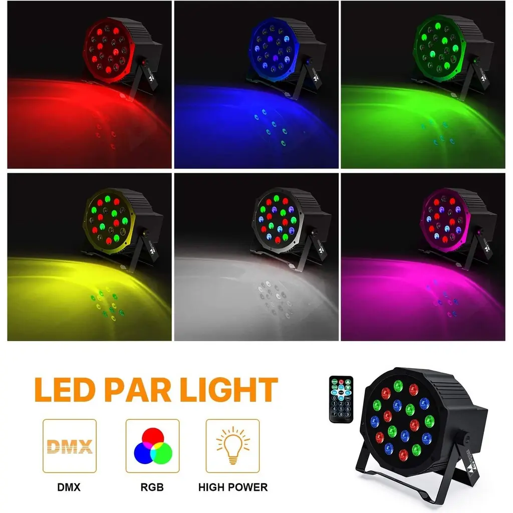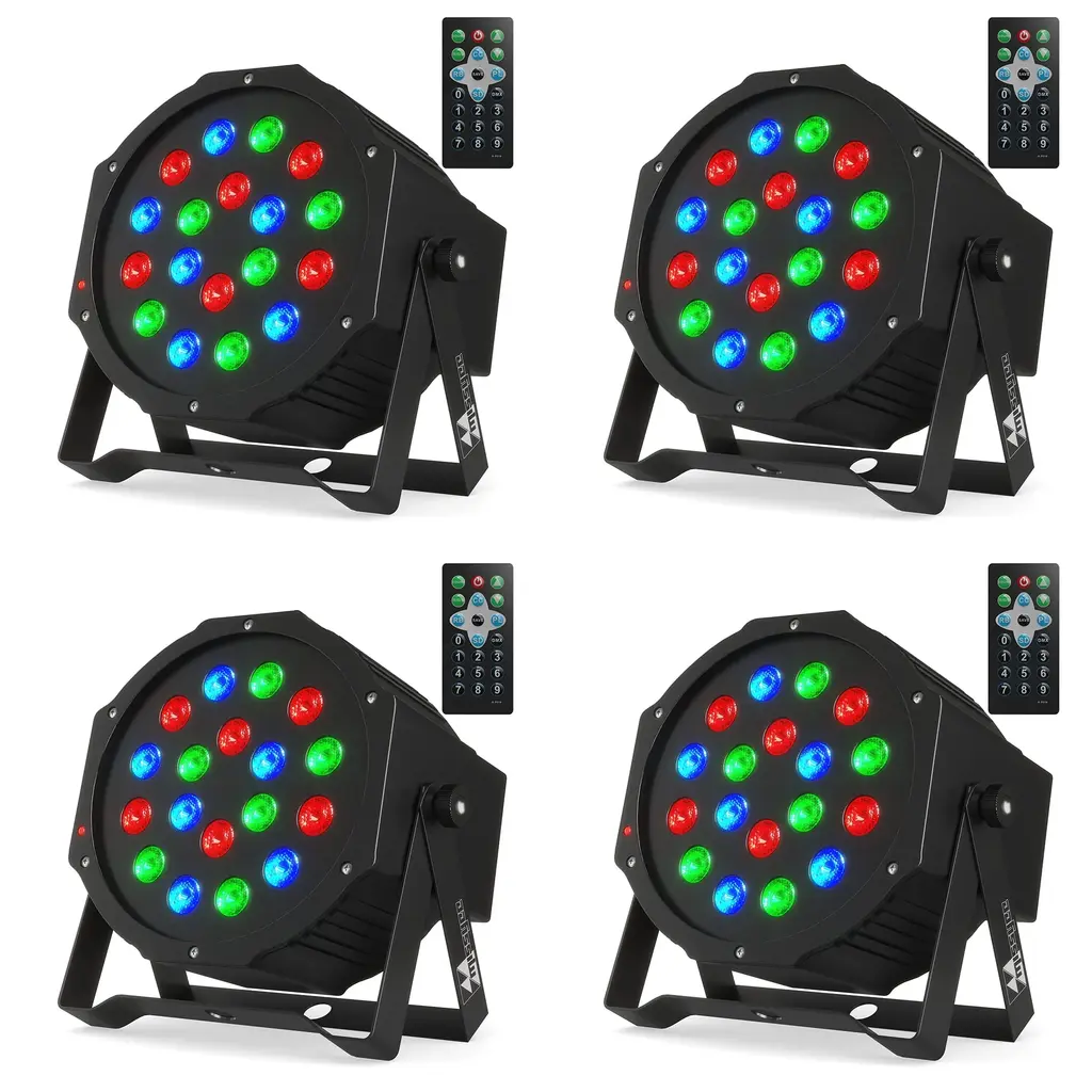 18 Rgb Led Dj Stage Uplight -Dmx Control Sound Activated With Remote Control And 7 Modes Led - 4 Pcs