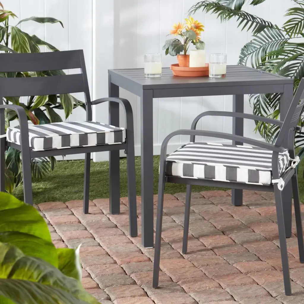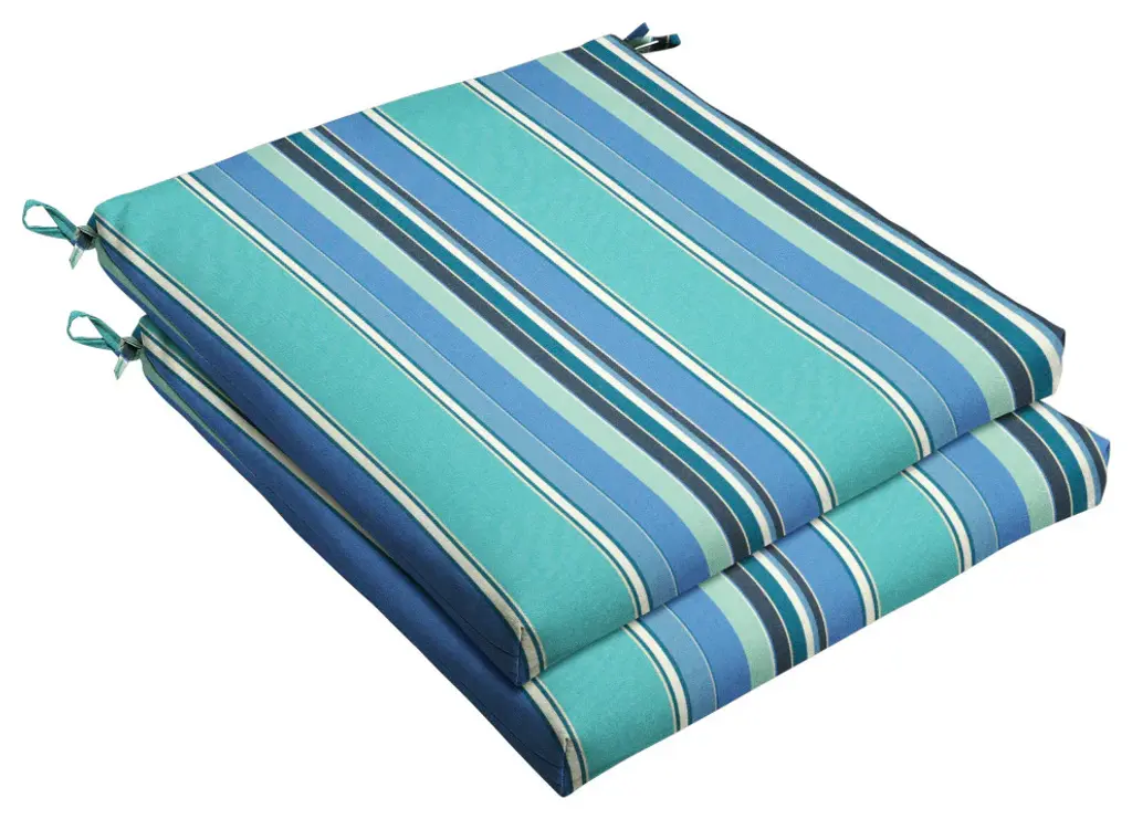 Add both comfort and style to your outdoor seating with this set of 2 square chair pads from Kensington Garden. A dense fiberfill insert gives this cushion a smooth finish, and eliminates any shifting for a more consistent comfort. Our durable outdoor polyester fabric resists fading, repels water, stains and spills, and is available in a wide variety of colors and patterns. Use with other KG cushions and pillows for a coordinated look. To prolong the life of our cushions and keep them looking beautiful, we recommend storing them indoors or covered when not in use.