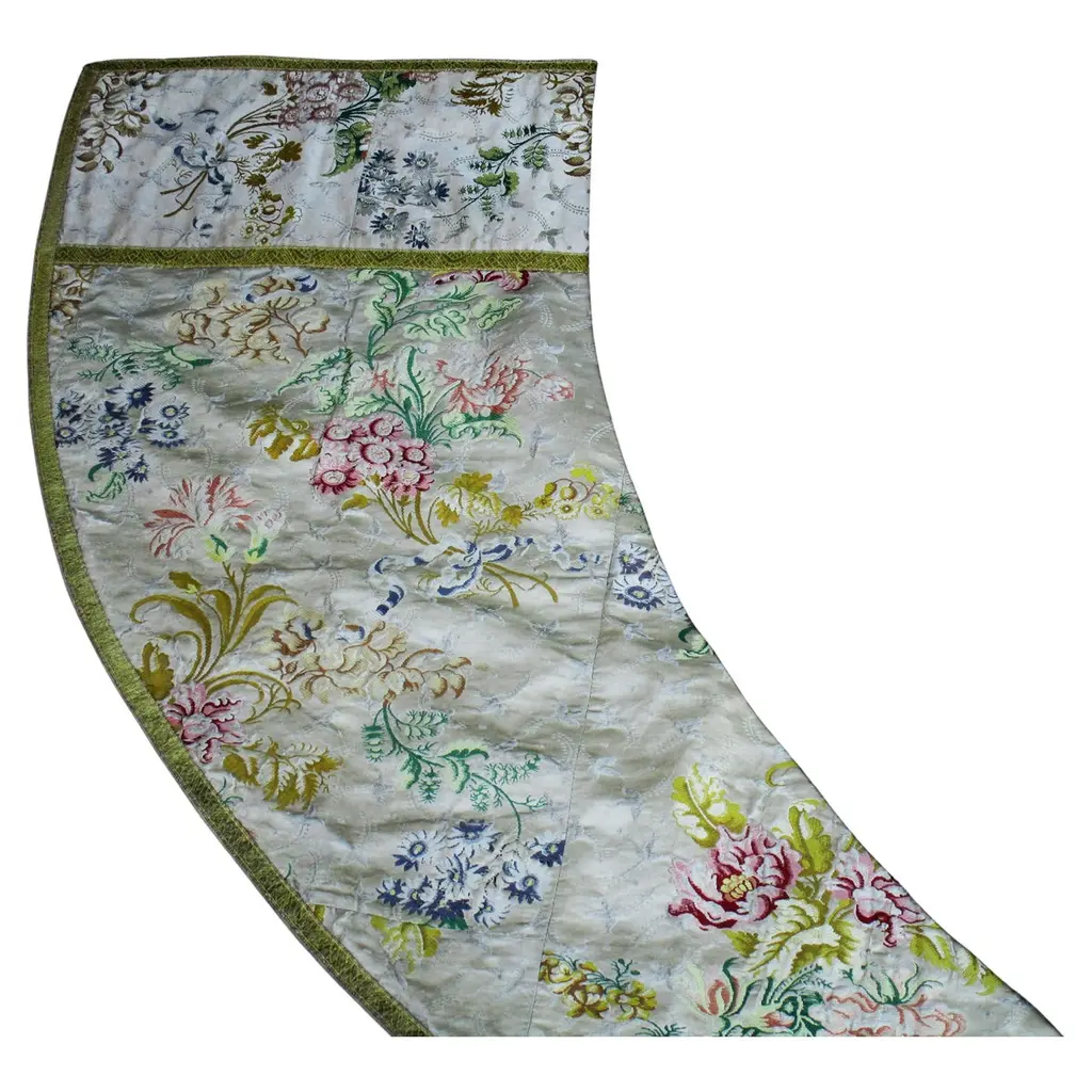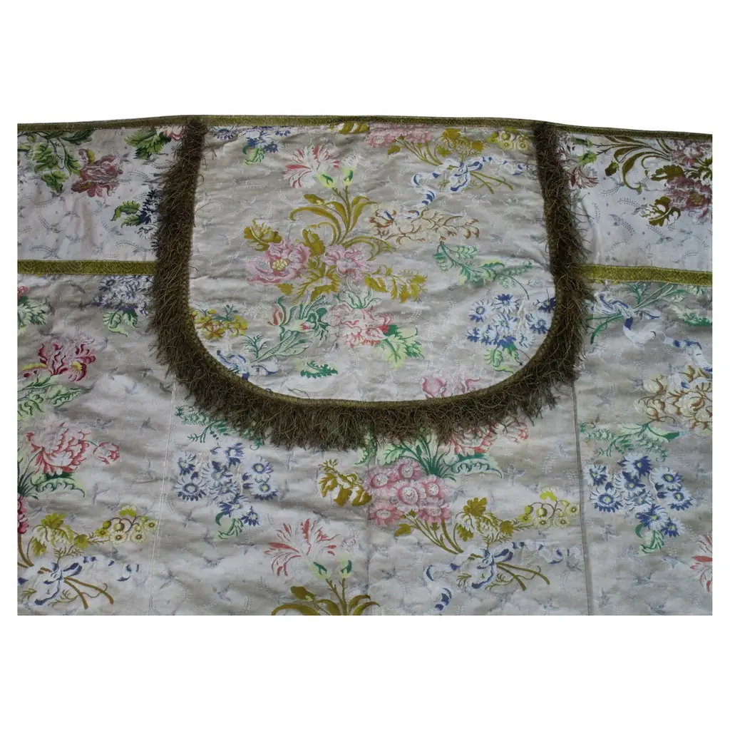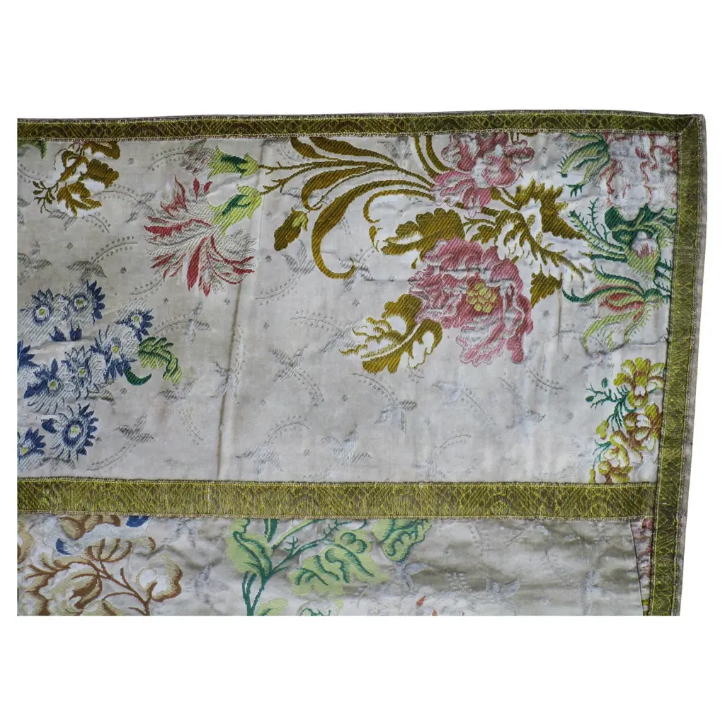 18th century French chasuble ( cope / liturgical vestment ) hand embroidered silk / metallic gold thread / linen. A deaccesion from the Memorial Art Gallery Rochester, NY. Overall good original antique condition w/ beautifully aged soft old colors. Measures 109 inches wide x 53 inches high x 1/8 inch thich. Look at all pictures and read condition report in comment section.