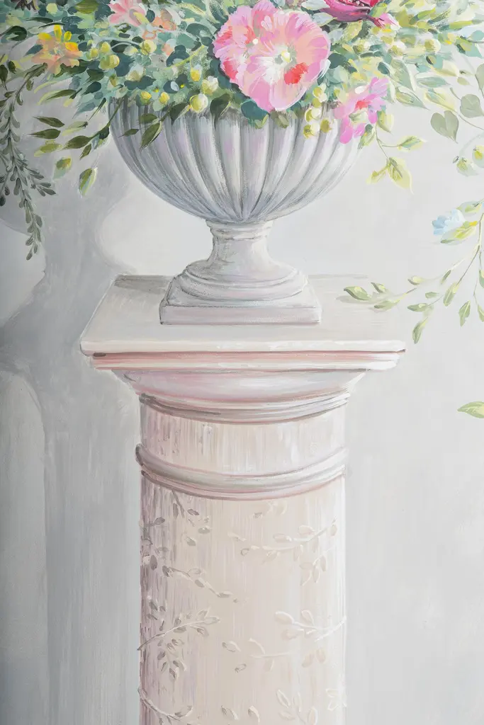 18th Century Hand Painted Decorative Panel With Ancient Column And Flowers