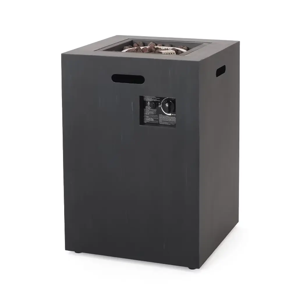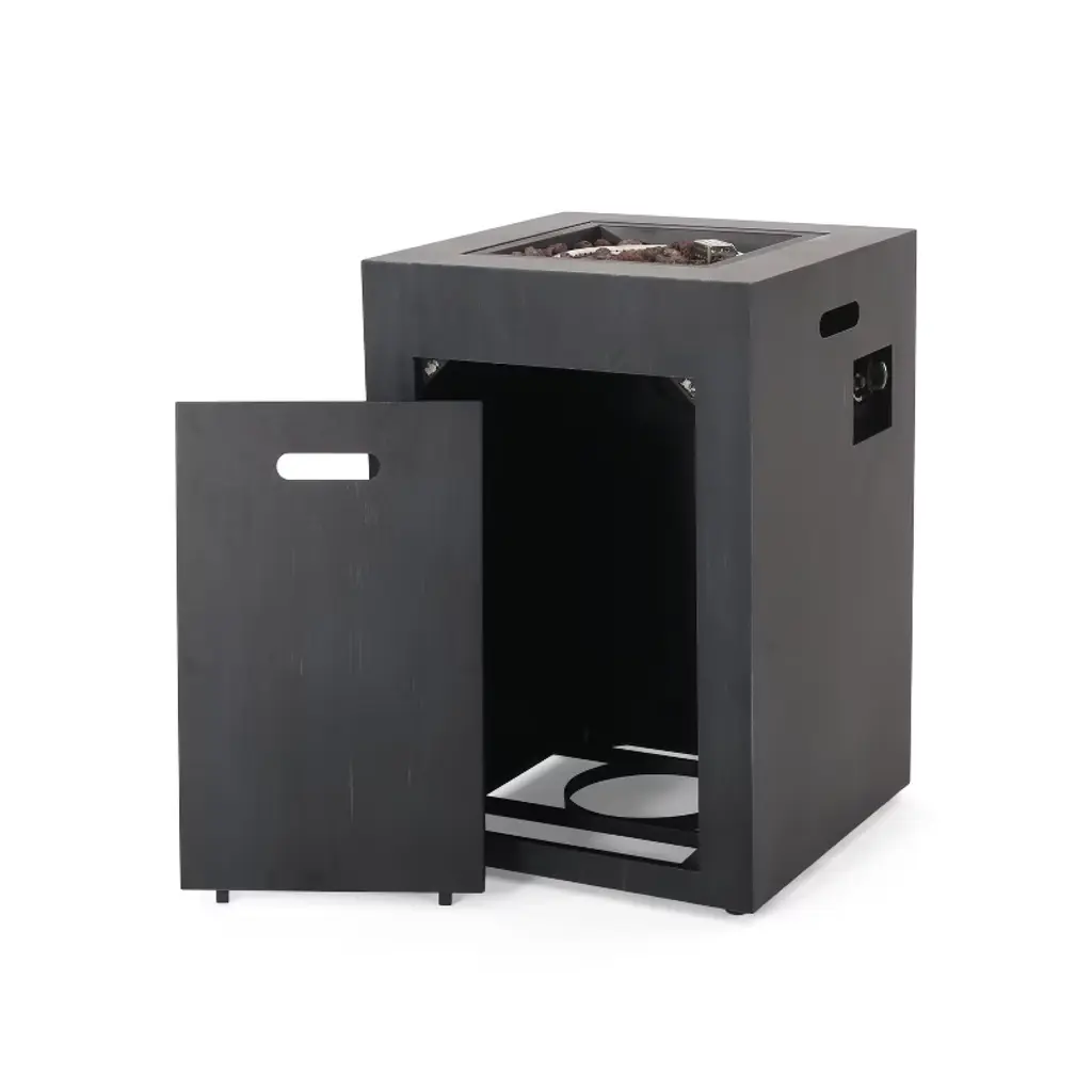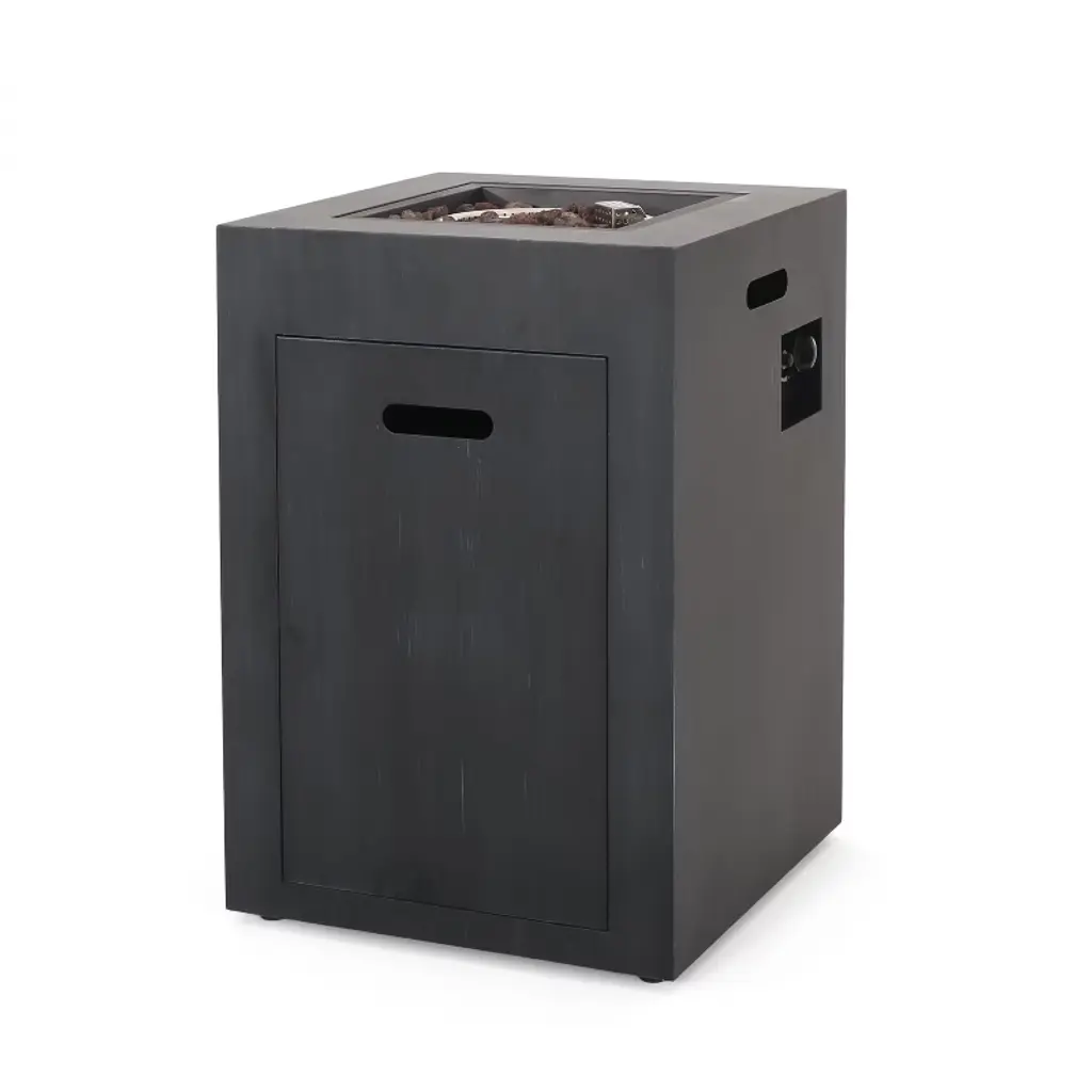 19.5 Inch Square Outdoor Fire Column With 30,000 Btu And Built In Propane Tank