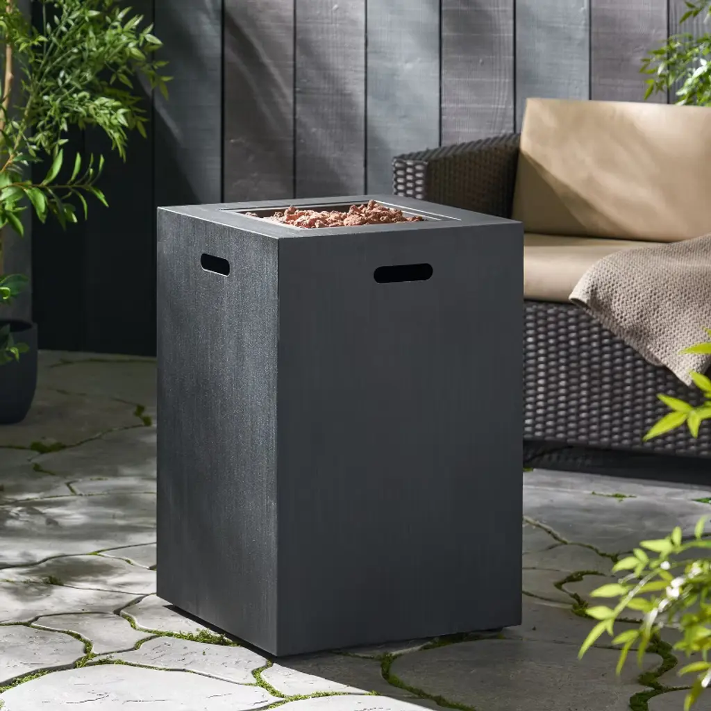 Enhance your patio or balcony with this 19.5 inch square fire column, delivering 30,000 BTU of warmth. Constructed from durable powder-coated iron with a sleek brushed finish, it offers a modern look while providing a cozy gathering spot for friends and family.