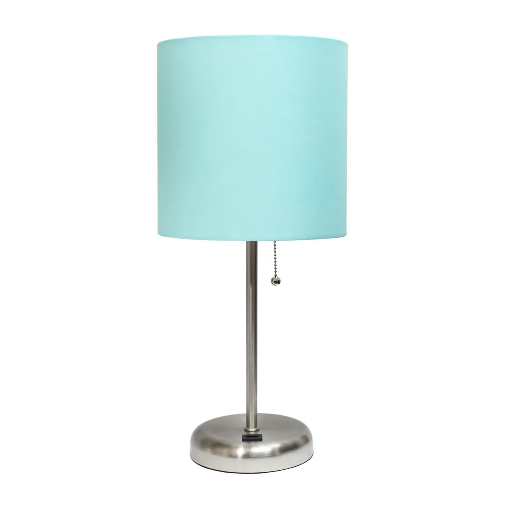 19.5" Usb Port Feature Metal Lamp In Steel W Aqua Shade - Brushed Steel/teal Shade