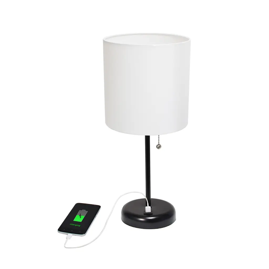 This may look like your average table lamp, but this essential light is actually designed to not only enhance your décor and light your space but it can also charge your electronics with the USB port located on the metal base of the lamp. Topped with a drum shade made of fabric, this lamp has a number of base and shade color combinations available.Features: