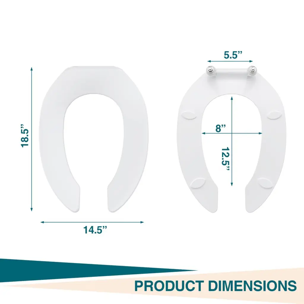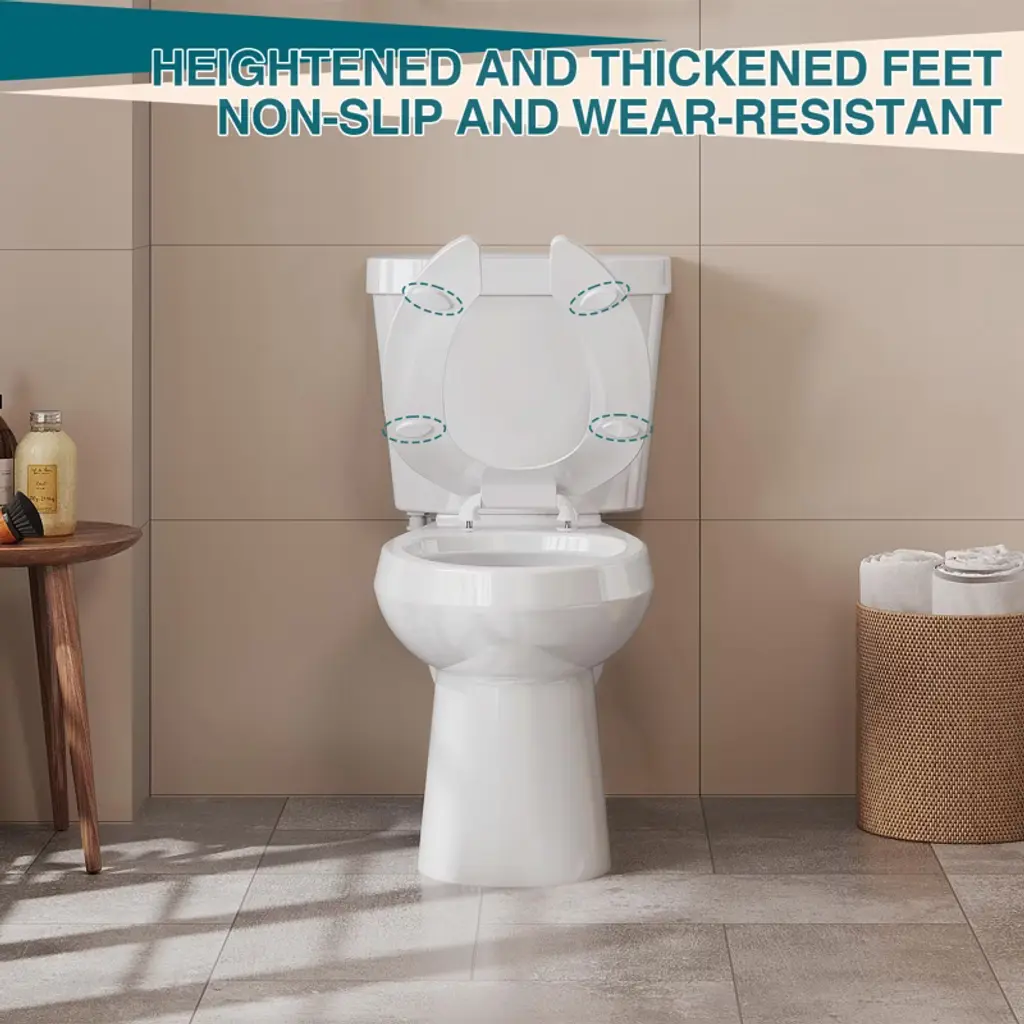 Upgrade your bathroom with this 19" Elongated Toilet Seat, designed with a front opening and soft-close hinge for quiet, safe use¡ªno slamming or pinched fingers. Made from thickened PP plastic with fluted panel details, it¡¯s durable, easy to clean, and built to last. The quick-release magnetic design allows effortless deep cleaning, while sturdy iron legs ensure stability. Ergonomically contoured for comfort, it fits most elongated toilets, making it a smart, long-lasting upgrade for homes, apartments, or hotels.