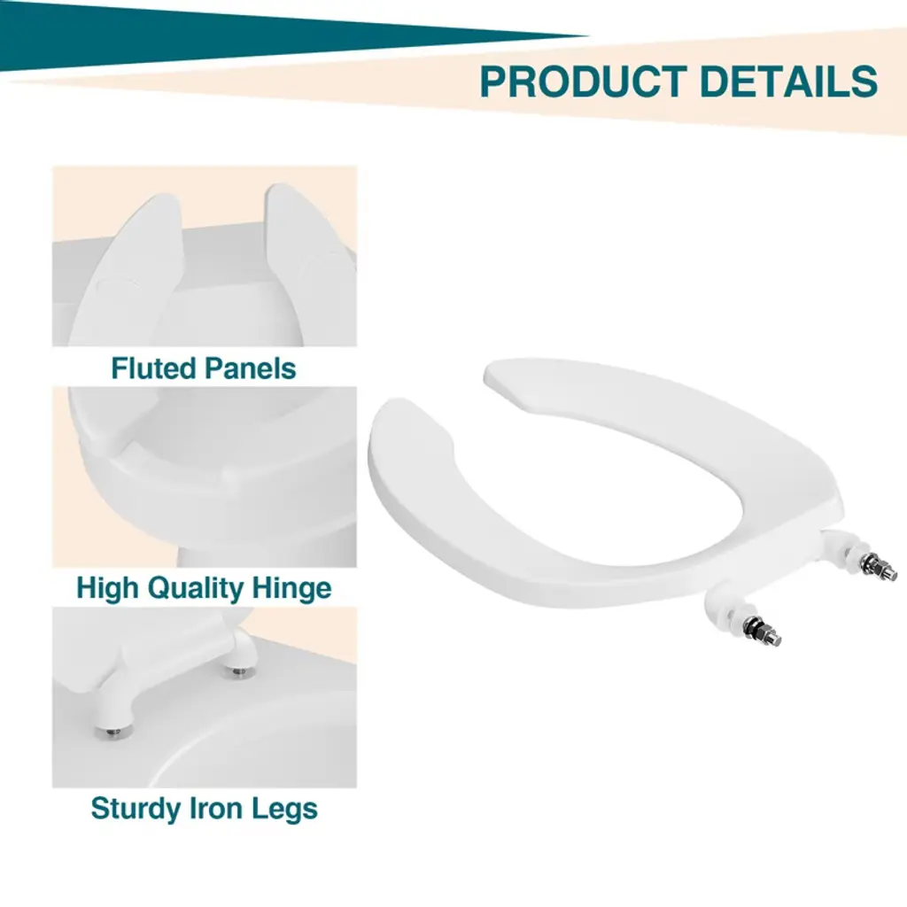 19" Elongated Toilet Seat Soft Close Without Cover,front Opening Toilet Lid,fluted Panels,sturdy Lron Legs,thickened Durable Plastic