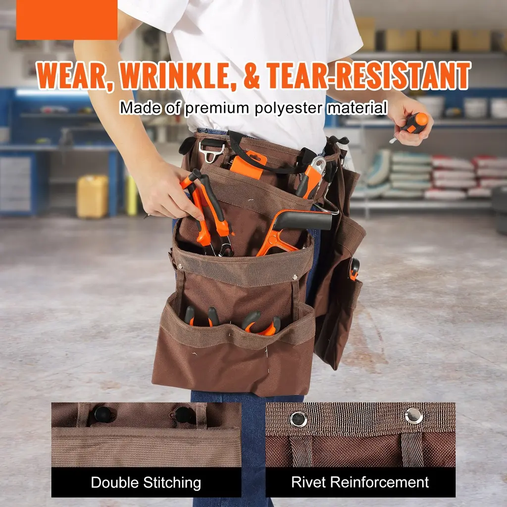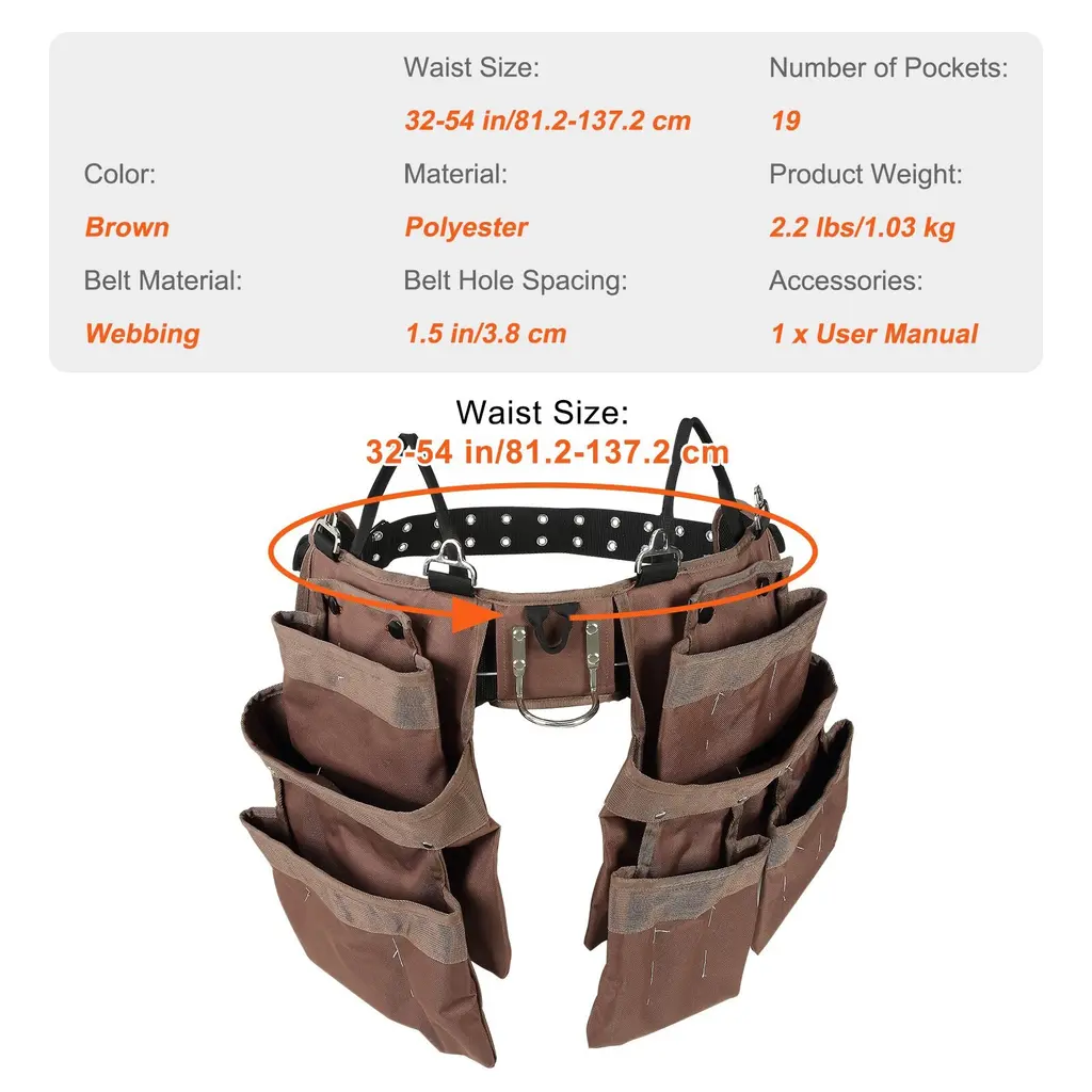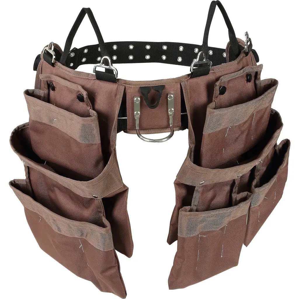 19 Pocket Tool Belt For Men Brown Polyester Lightweight And Adjustable Fit - 58.6 X 19.2 X 1.1 In - Brown