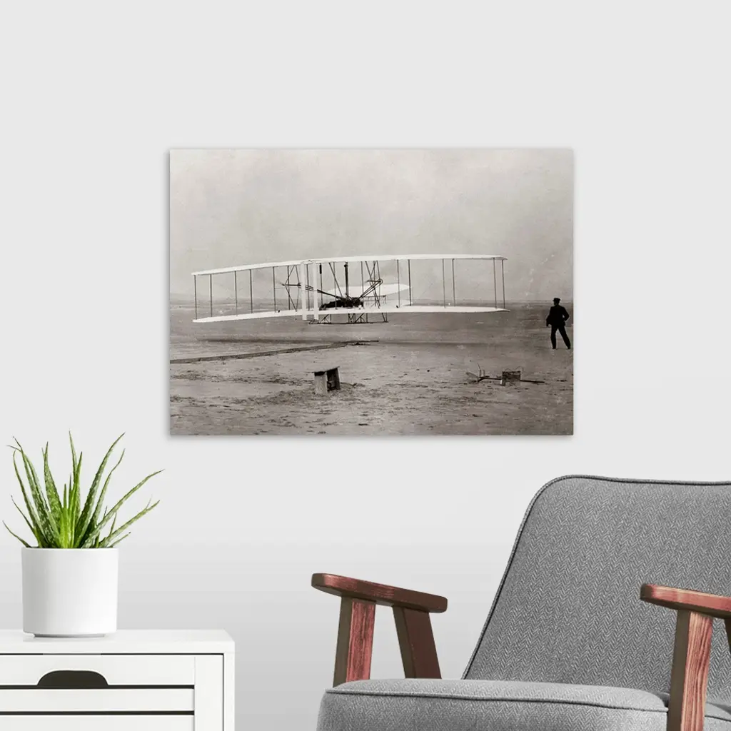 1903 Wright Brothers' Plane Taking Off At Kitty Hawk North Carolina Usa