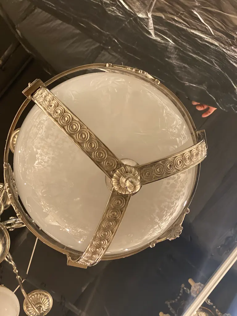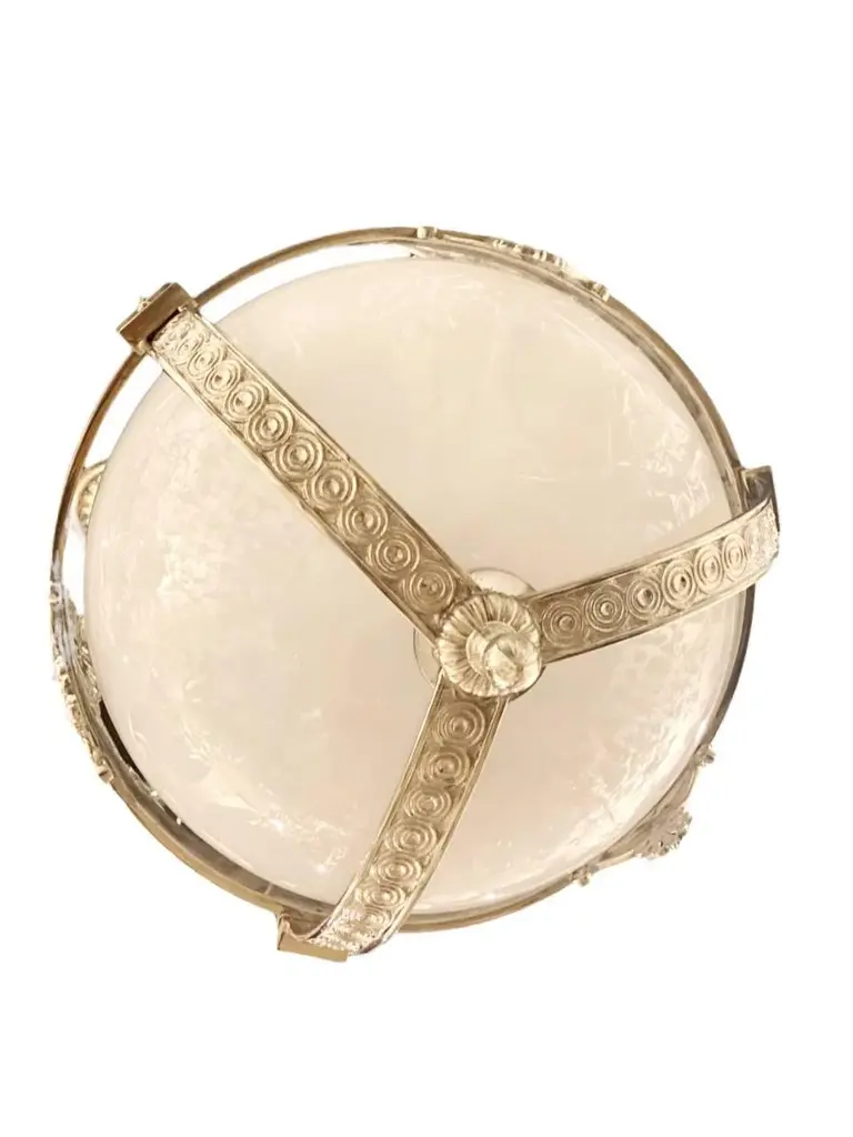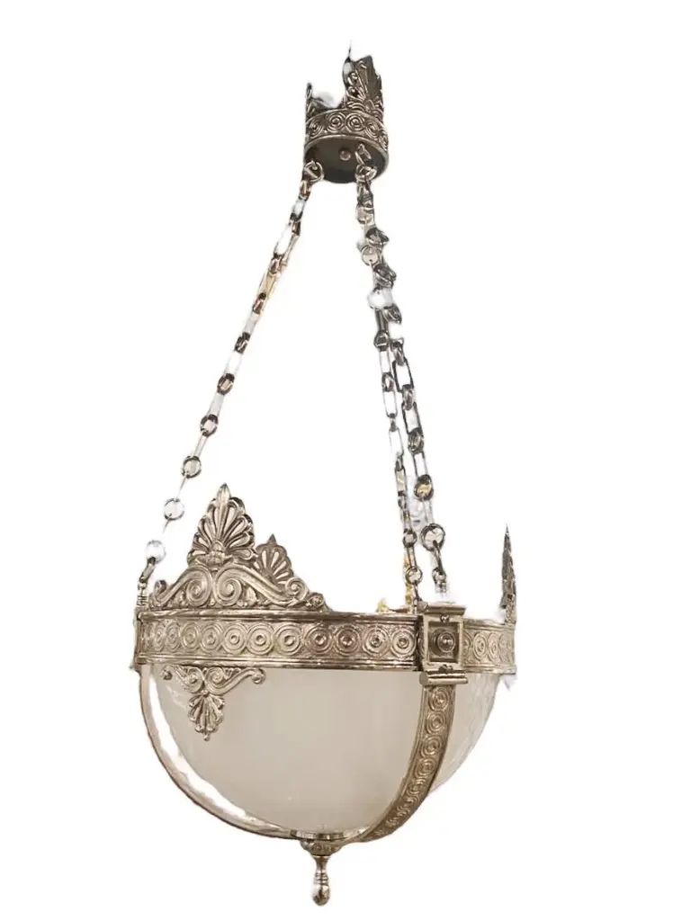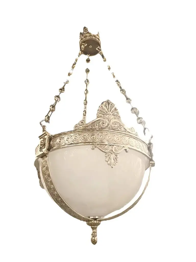 A circa 1920’s silver plate light fixture neoclassic style with Opaline glass inset